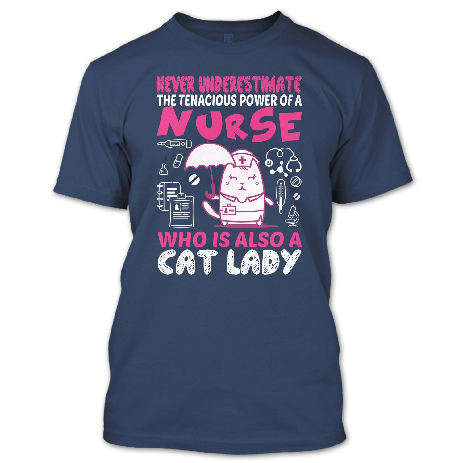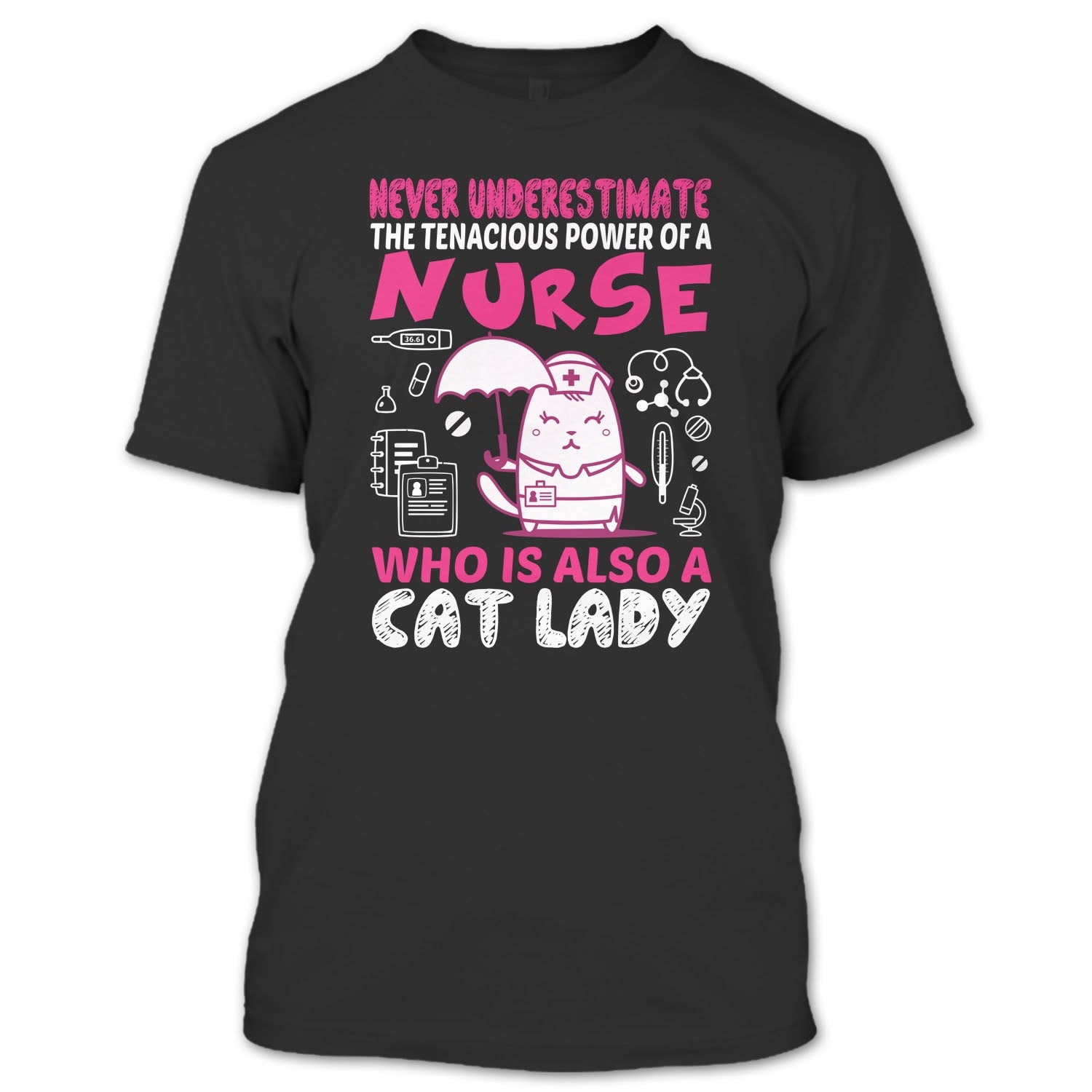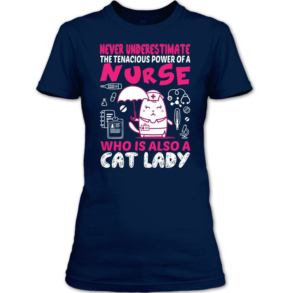 Never Underestimate The Tenacious Powe Of A Nurse T Shirt, Who Is Also A Cat Lady T Shirt