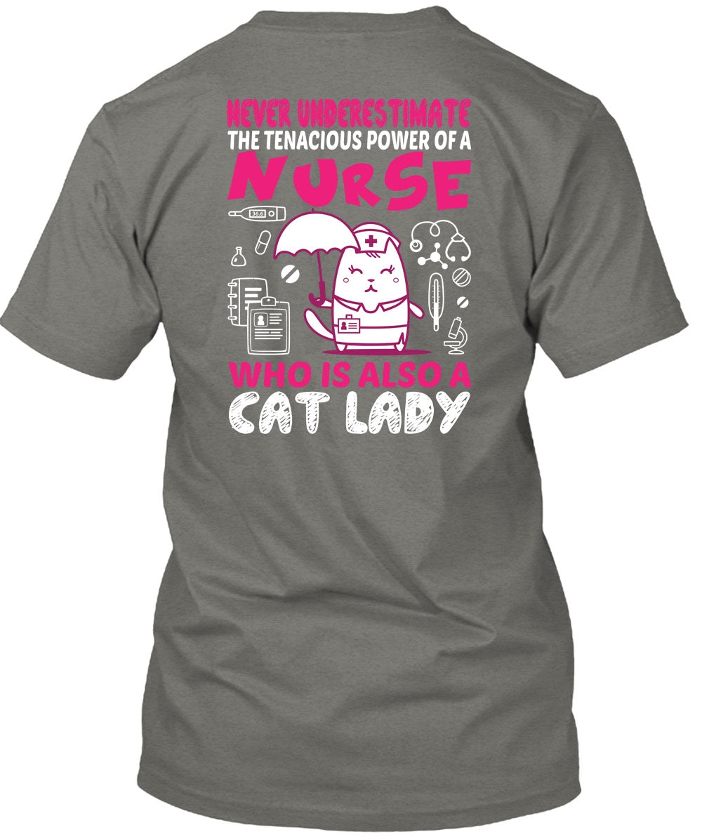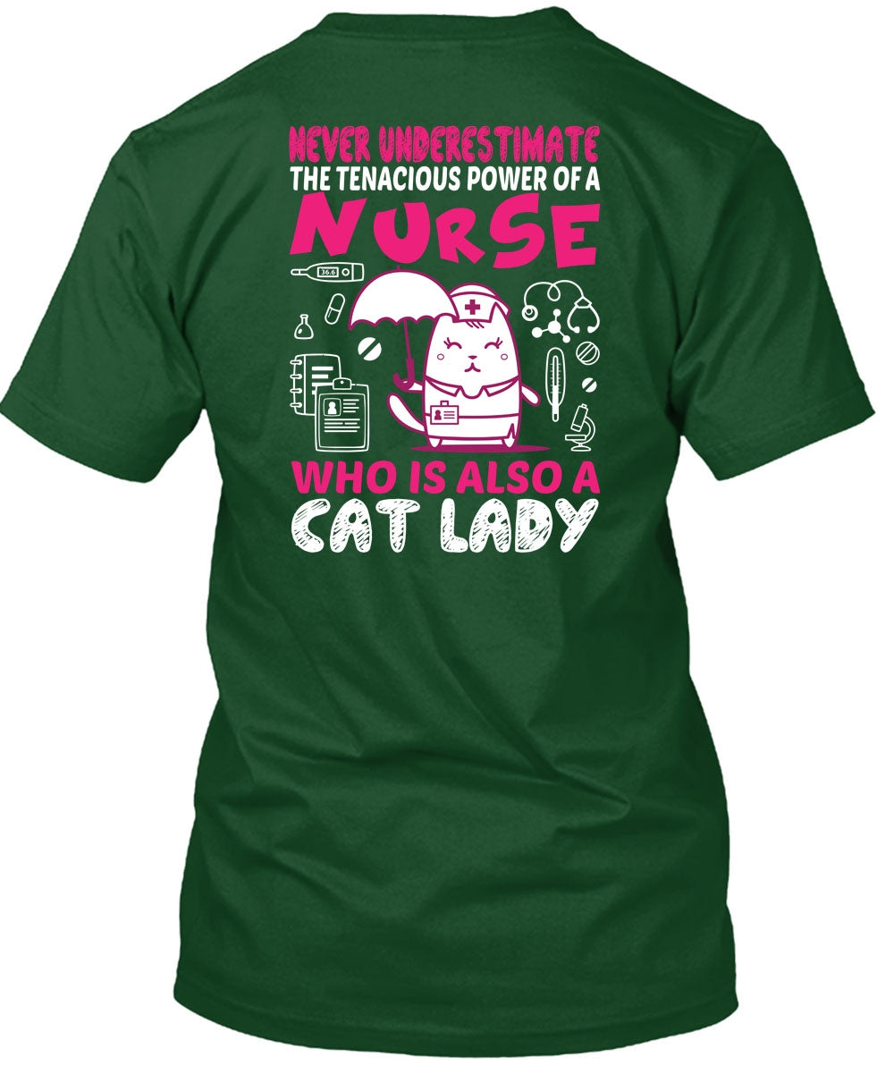 Never Underestimate The Tenacious Power Of A Nurse T Shirt, Who Is Also Cat Lady T Shirt