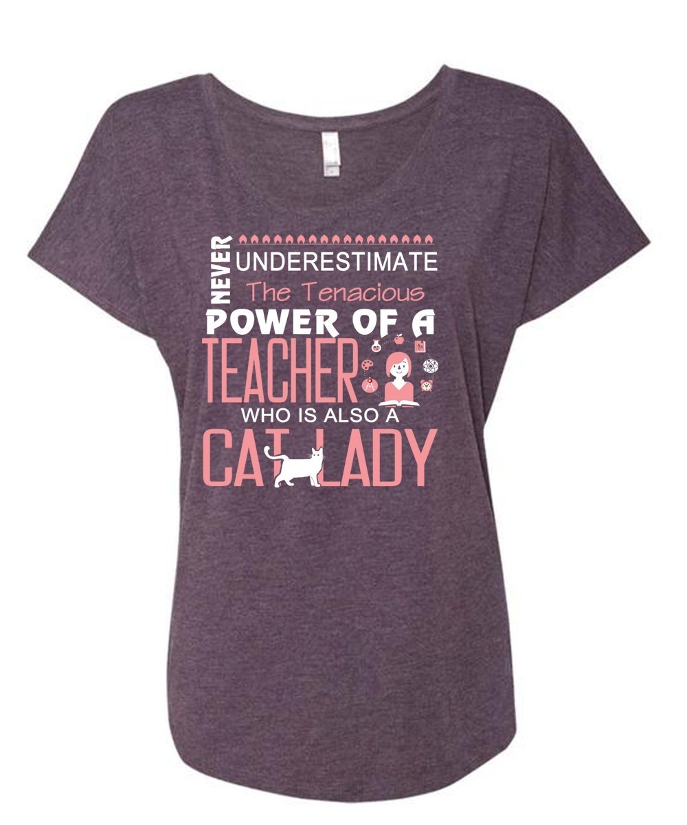 Never Underestimate The Tenacious Power Of A Teacher T Shirt, Cat Lady T Shirt (Ladies' Triblend Dolman Sleeve)