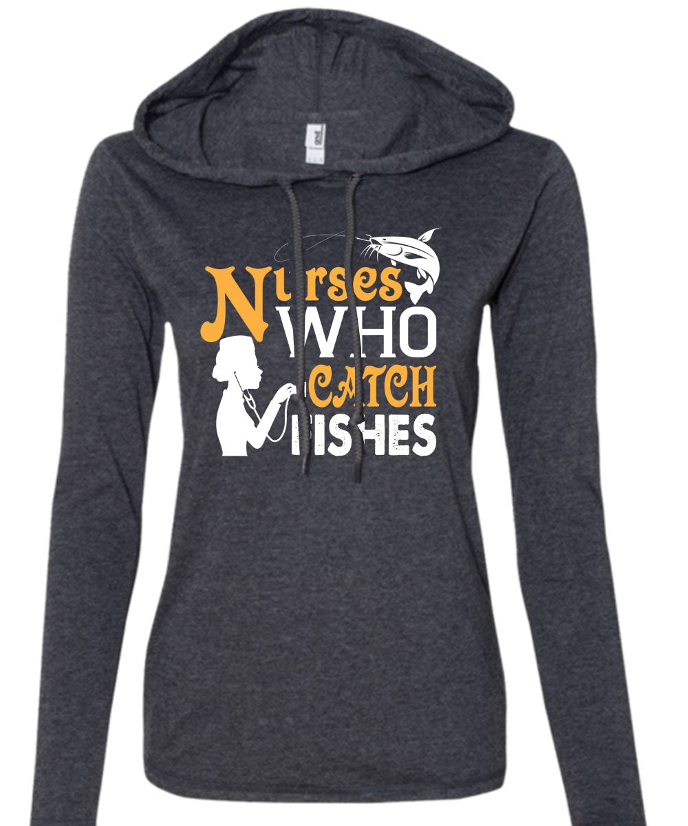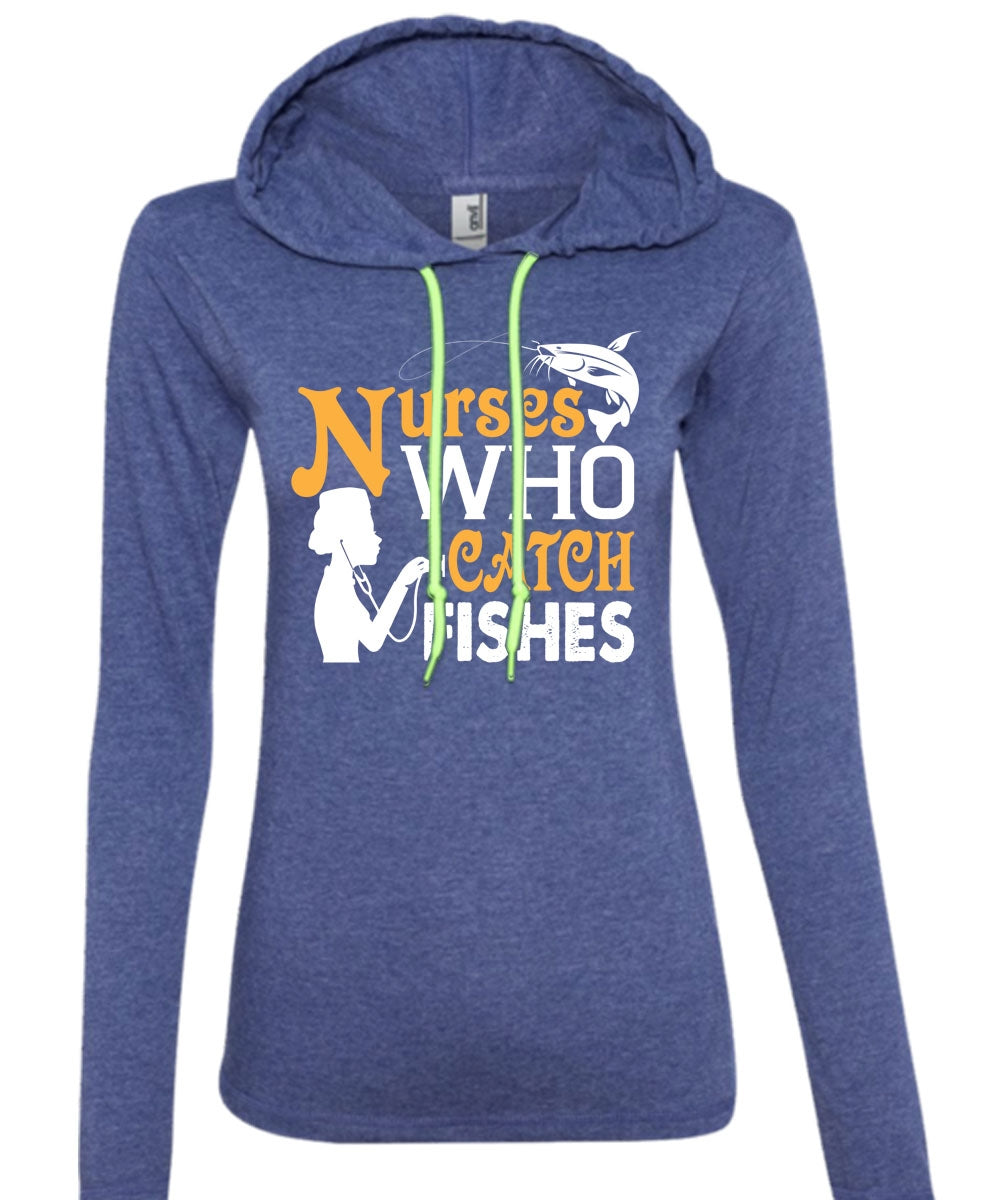 Nurses Who Catch Fishes T Shirt, Job T Shirt, I Love Fish T Shirt (Anvil Ladies Ringspun Hooded)