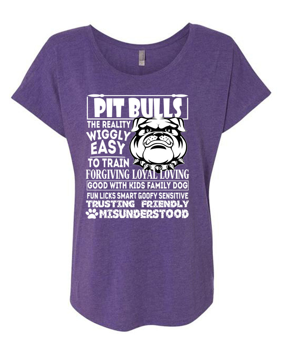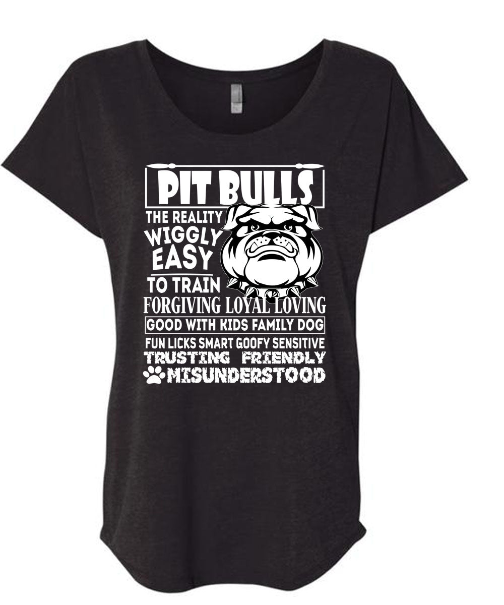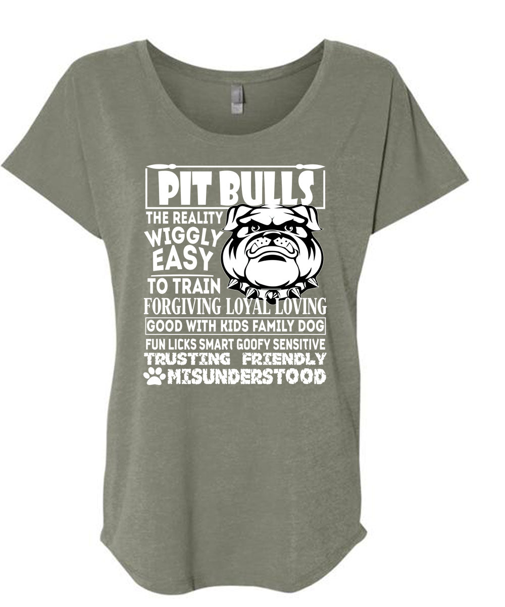 Pit Bulls The Reality Wiggly Easy T Shirt, Good With Kids Family Dog T Shirt, Cool Shirt (Ladies' Triblend Dolman Sleeve)