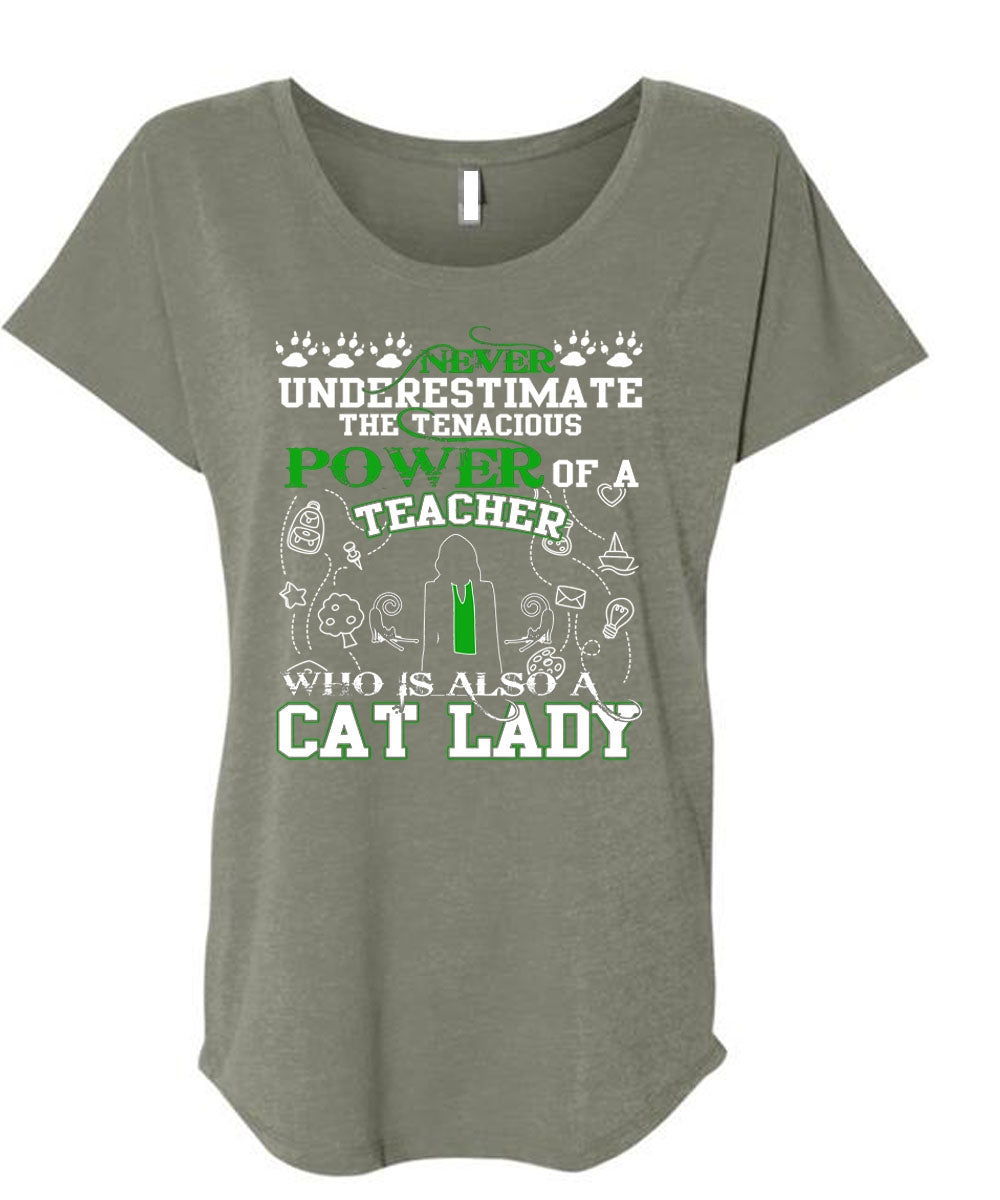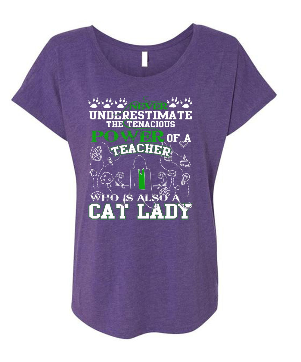 Power Of A Teacher T Shirt, Who Is Also A Cat Lady T Shirt, Cool Shirt (Ladies' Triblend Dolman Sleeve)