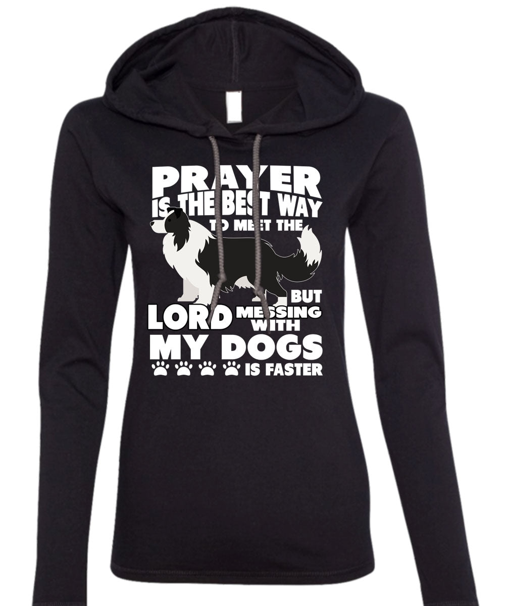 Prayer Is The Best Way T Shirt, Messing With My Dogs T Shirt (Anvil Ladies Ringspun Hooded)