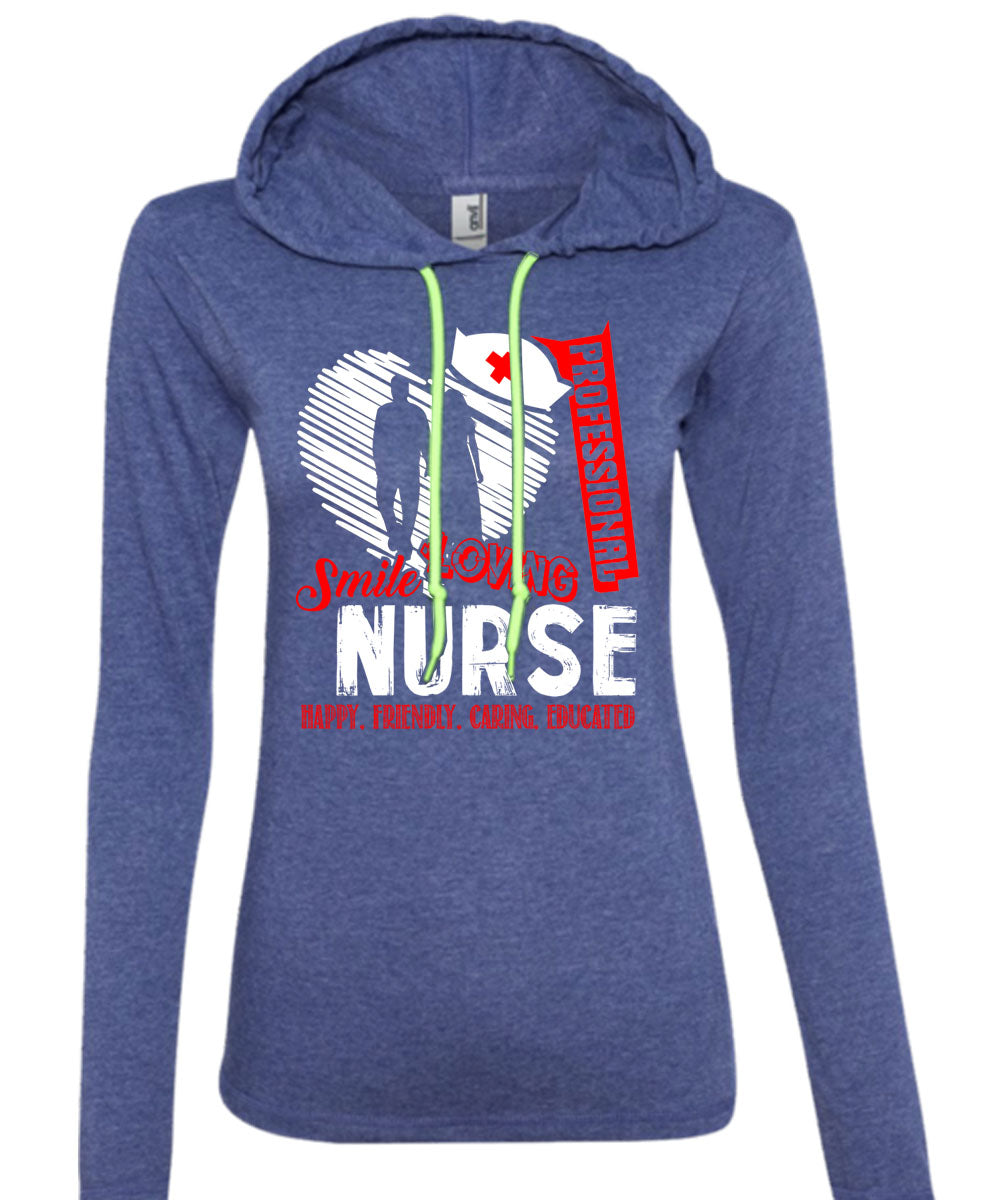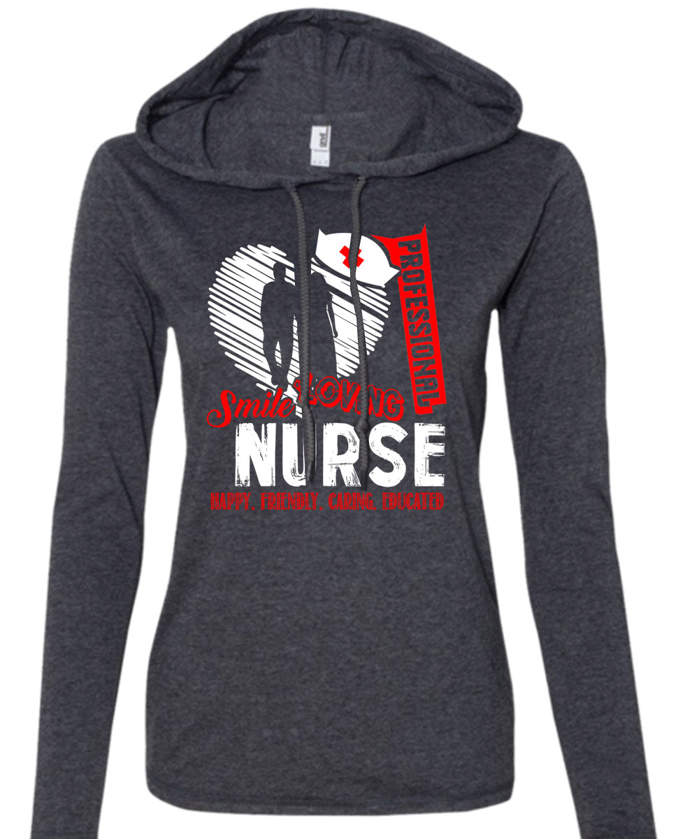 Professional Smile Loving Nurse T Shirt, Happy Friendly Caring Educated T Shirt (Anvil Ladies Ringspun Hooded)