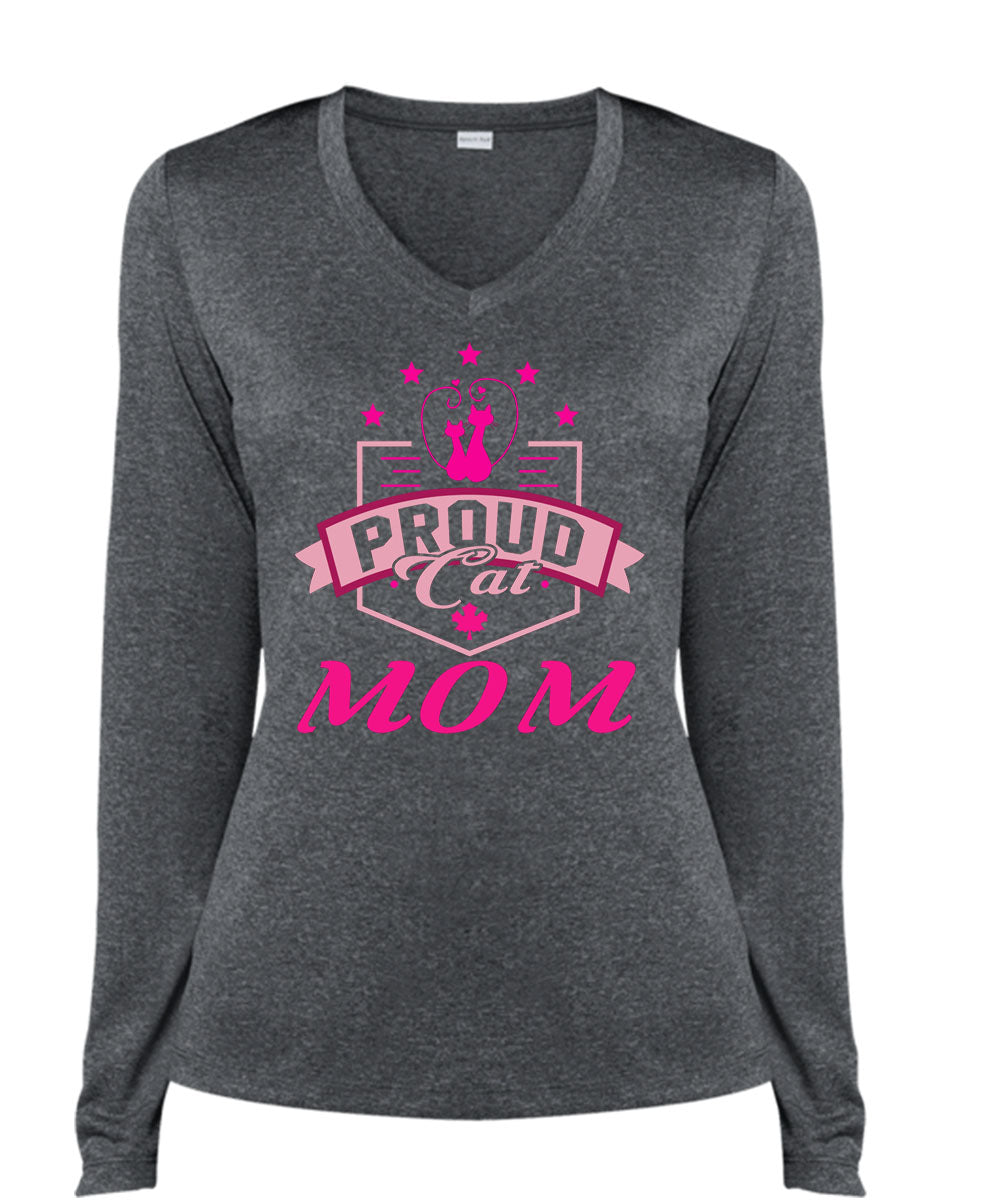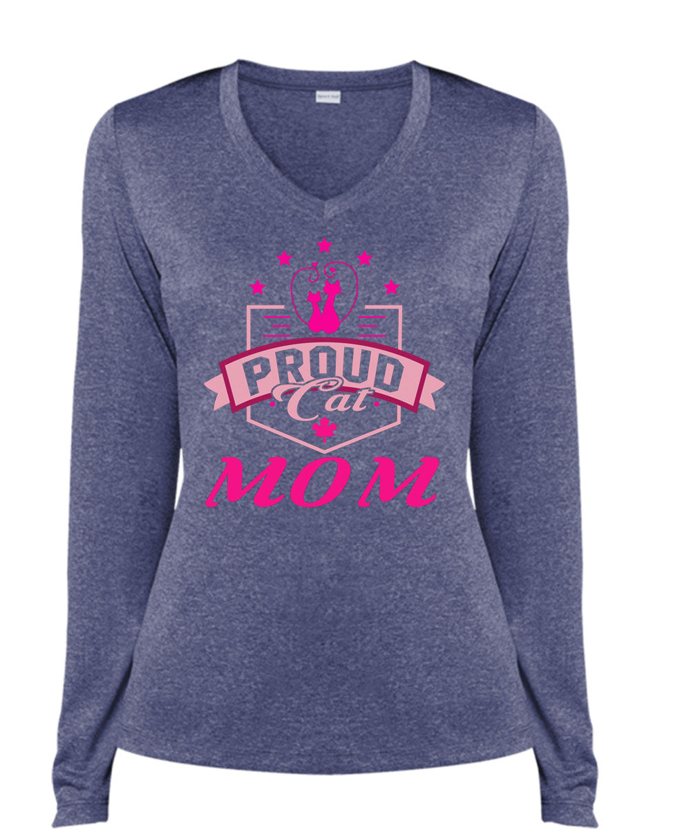 Proud Cat Mom T Shirt, I Love My Cat T Shirt, Cool Shirt (Ladies LS Heather V-Neck)