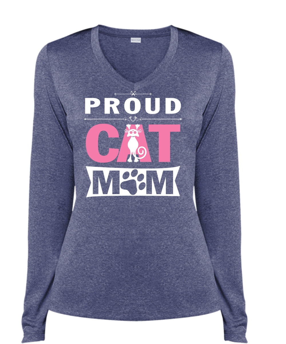 Proud Cat Mom T Shirt, My Pets T Shirt, My Favorite T Shirt (Ladies LS Heather V-Neck)