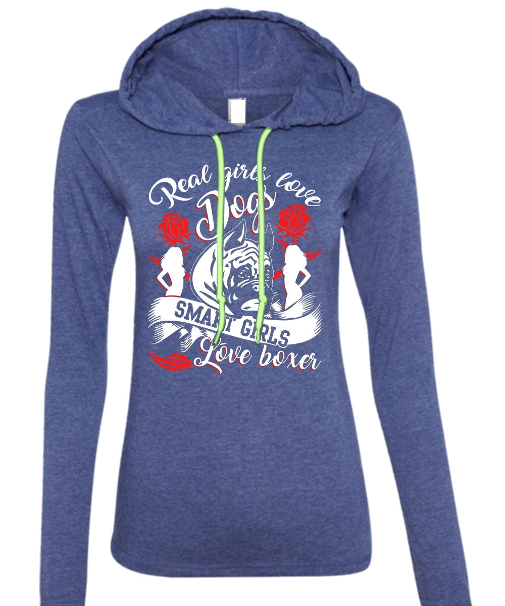 Real Girls Love Dogs T Shirt, Smart Girls Love Boxer T Shirt (Anvil Ladies Ringspun Hooded)