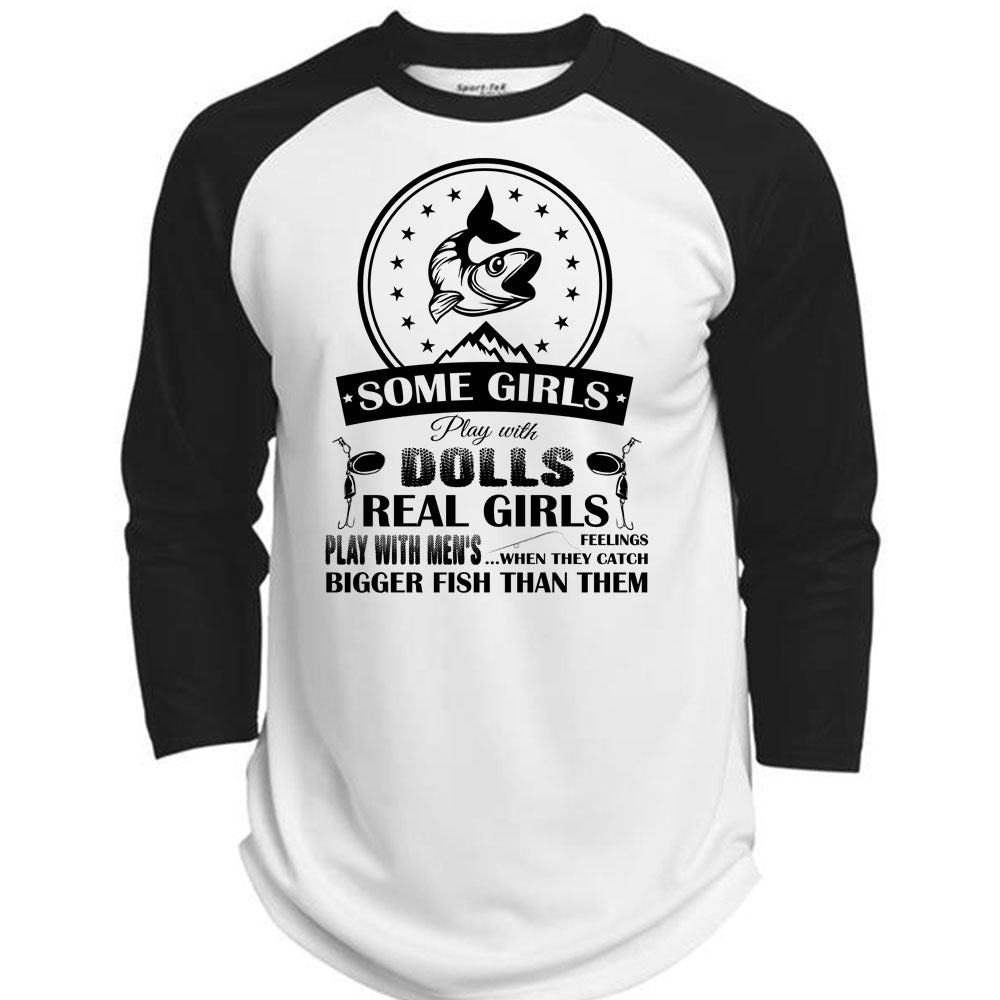 Real Girls Play With Men's When They Catch Bigger Fish T Shirt, Favorite T Shirt (Polyester Game Baseball Jersey)