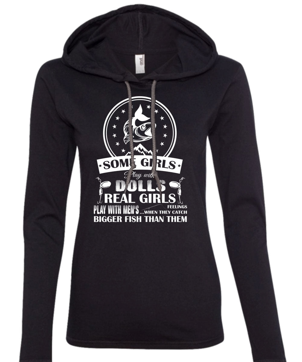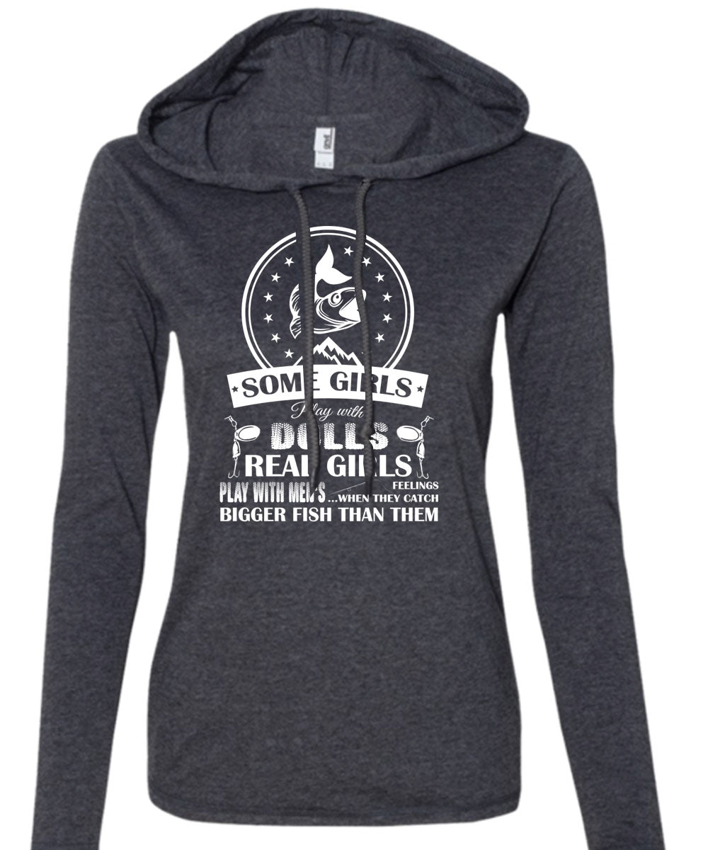 Real Girls Play With Men's When They Catch Bigger Fish Than Them T Shirt (Anvil Ladies Ringspun Hooded)