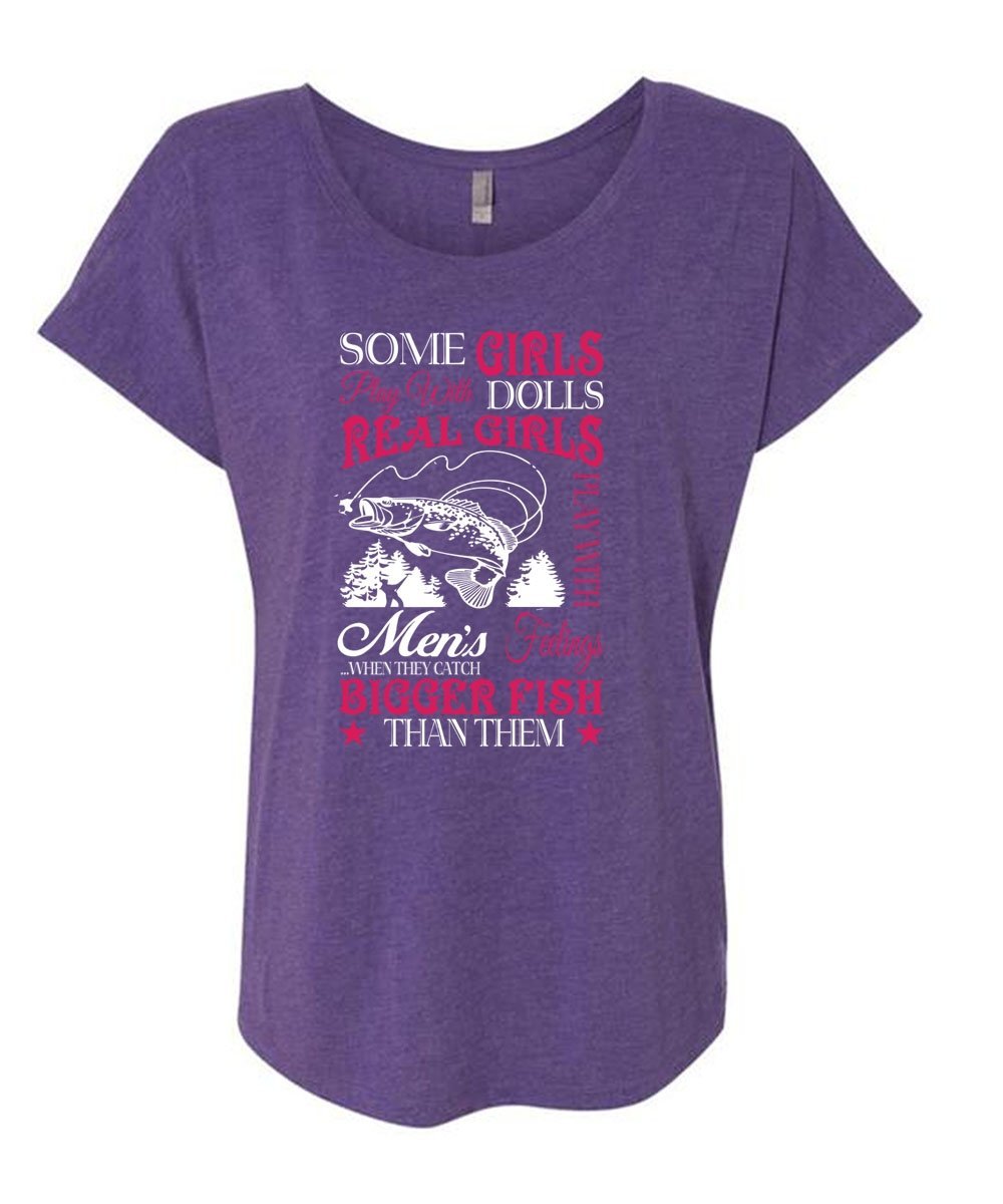 Real Girls Play With Men's When They Catch Bigger Fish Than Them T Shirt, Sport T Shirt (Ladies' Triblend Dolman Sleeve)