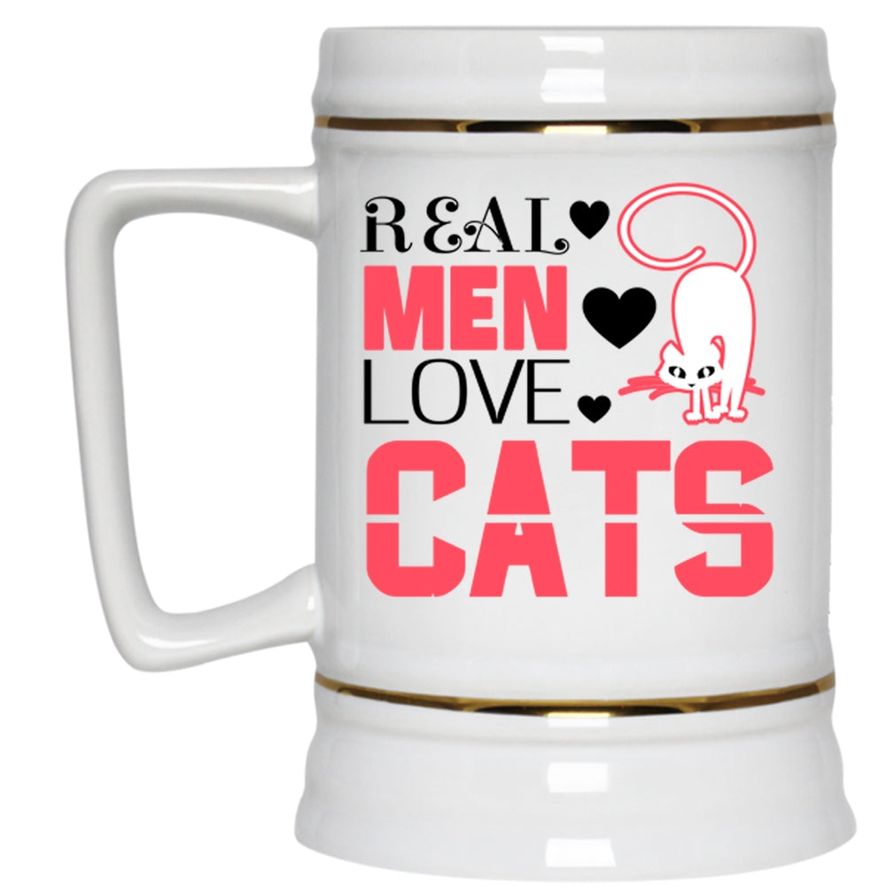 Real Men Love Cats Mug, Cool Gift For My Dad Cup (Beer Mug)