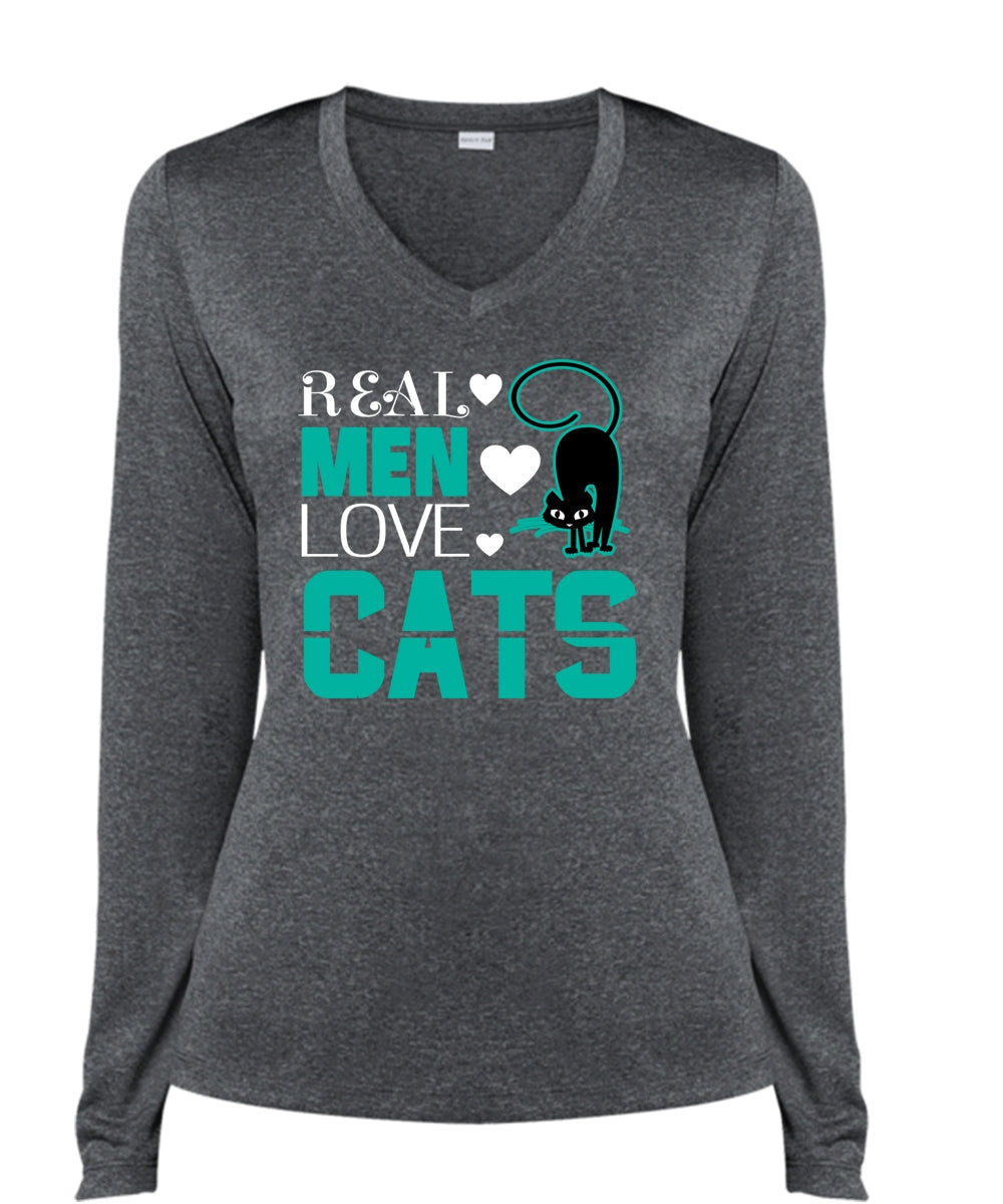 Real Men Love Cats T Shirt, My Pets T Shirt, My Favorite T Shirt (Ladies LS Heather V-Neck)