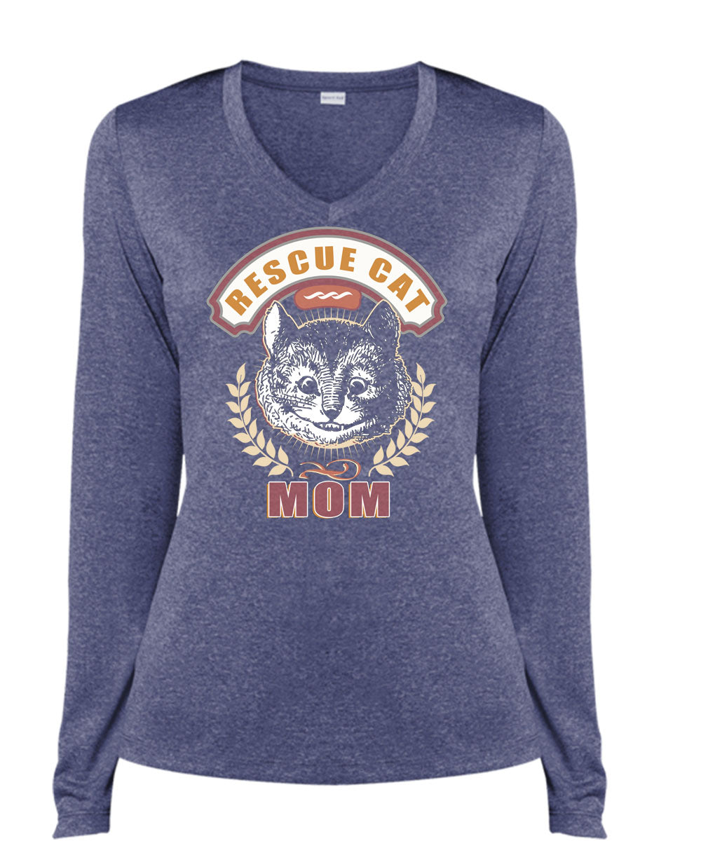Rescue Cat Mom T Shirt, I Love My Cat T Shirt, Cool Shirt (Ladies LS Heather V-Neck)