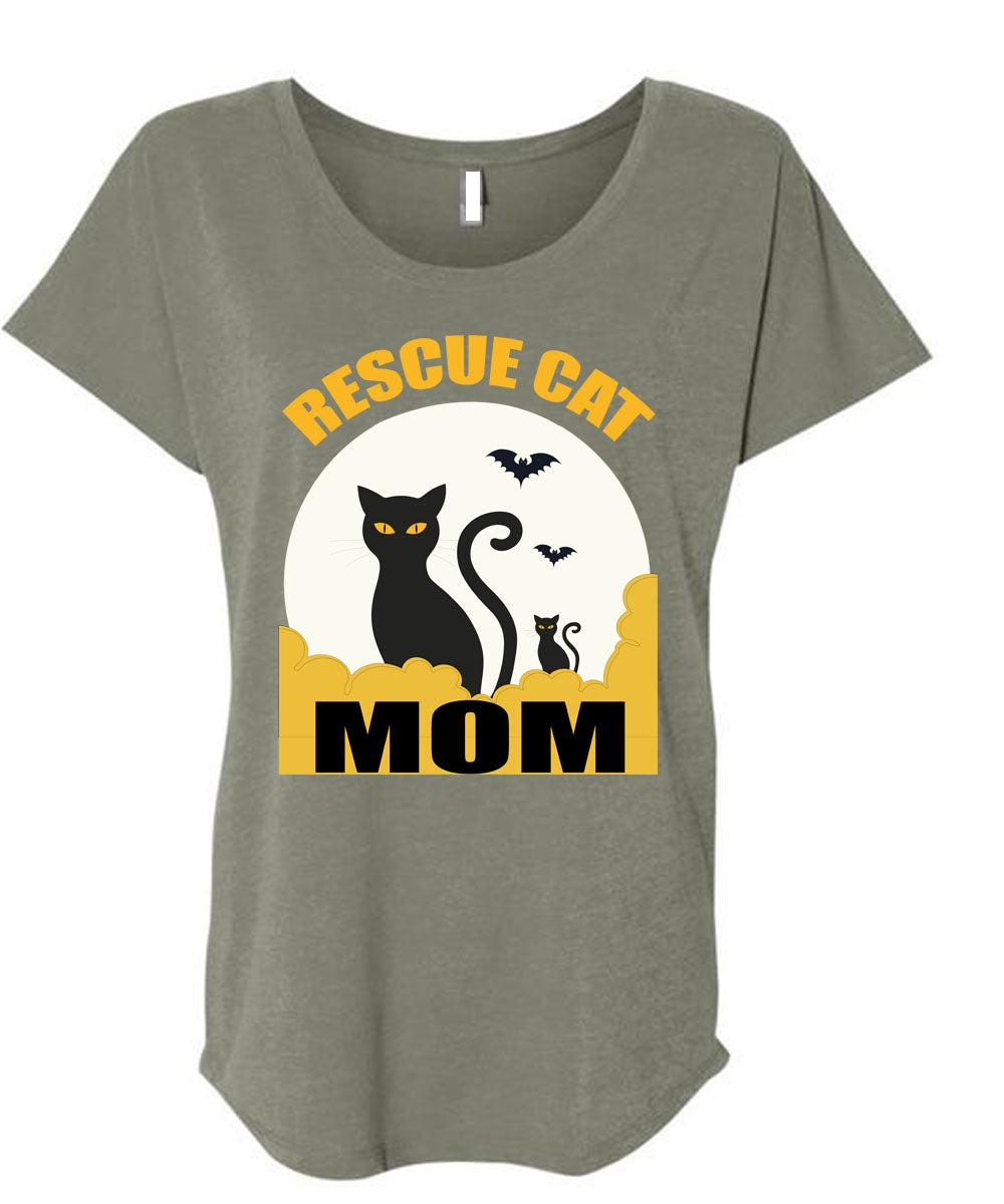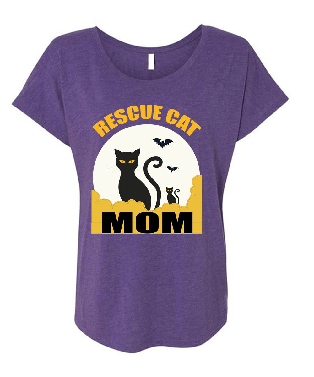 Rescue Cat Mom T Shirt, My Favorite T Shirt, Cool Shirt (Ladies' Triblend Dolman Sleeve)