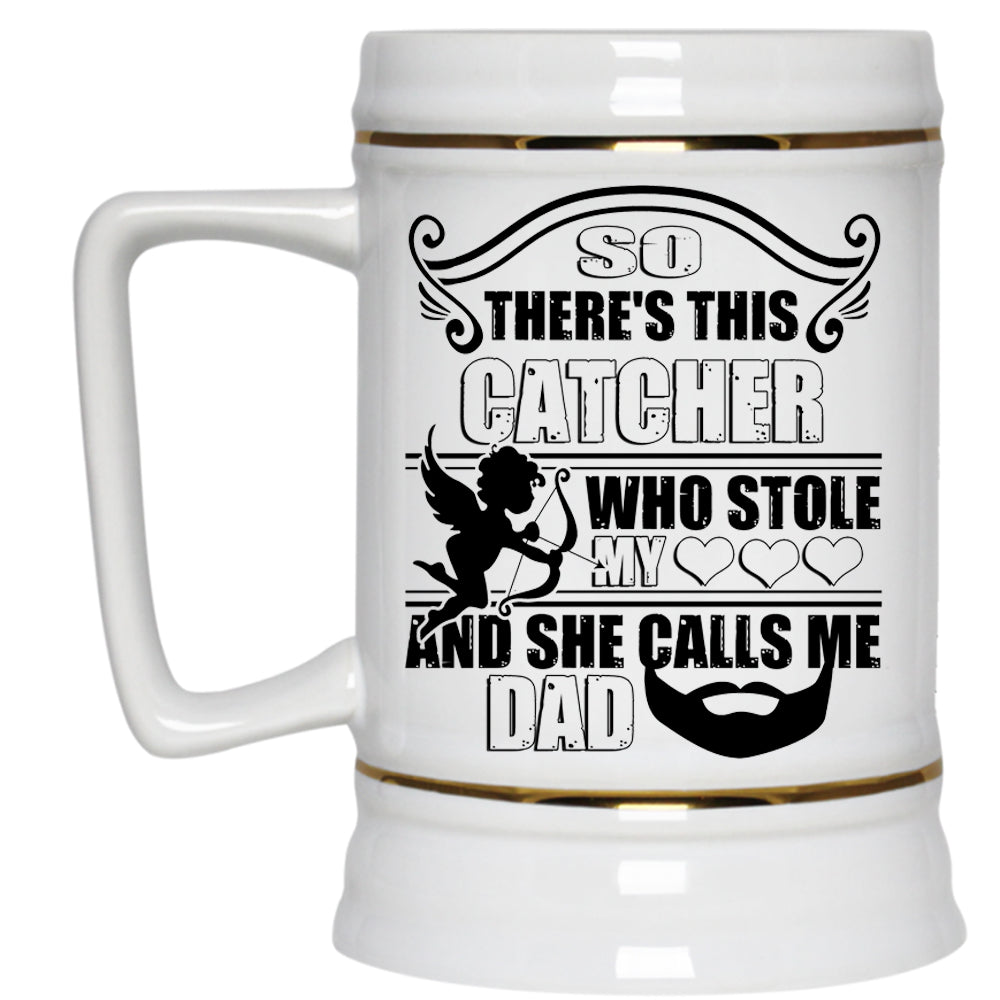 She Calls Me Dad Beer Stein 22oz, This Catcher Stole My Heart Beer Mug