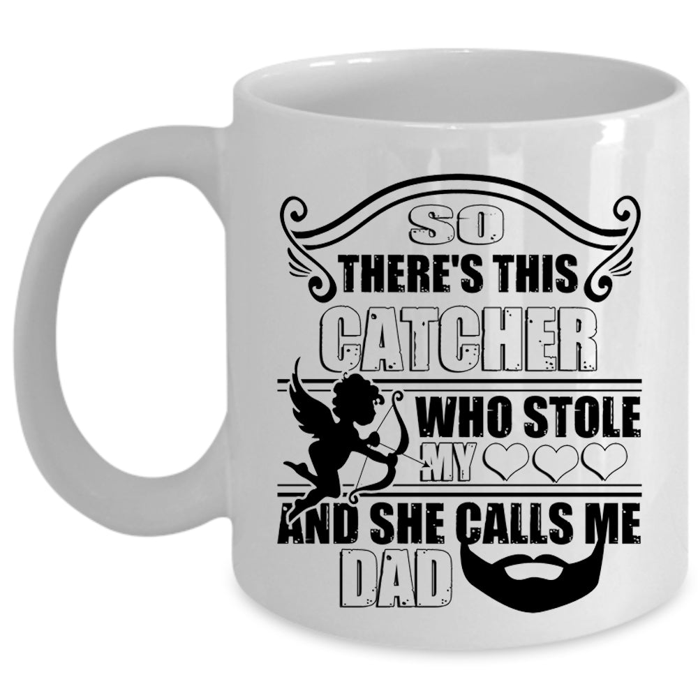 She Calls Me Dad Coffee Mug, This Catcher Stole My Heart Cup