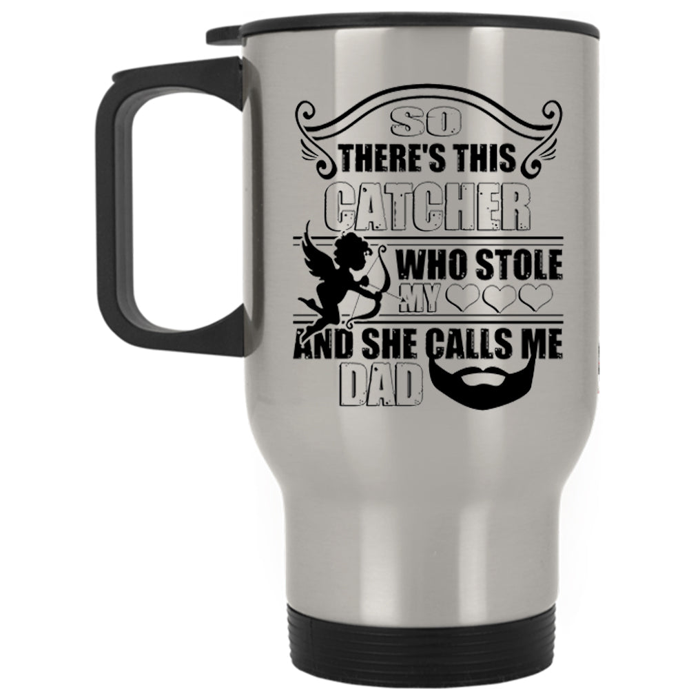 She Calls Me Dad Travel Mug, This Catcher Stole My Heart Mug