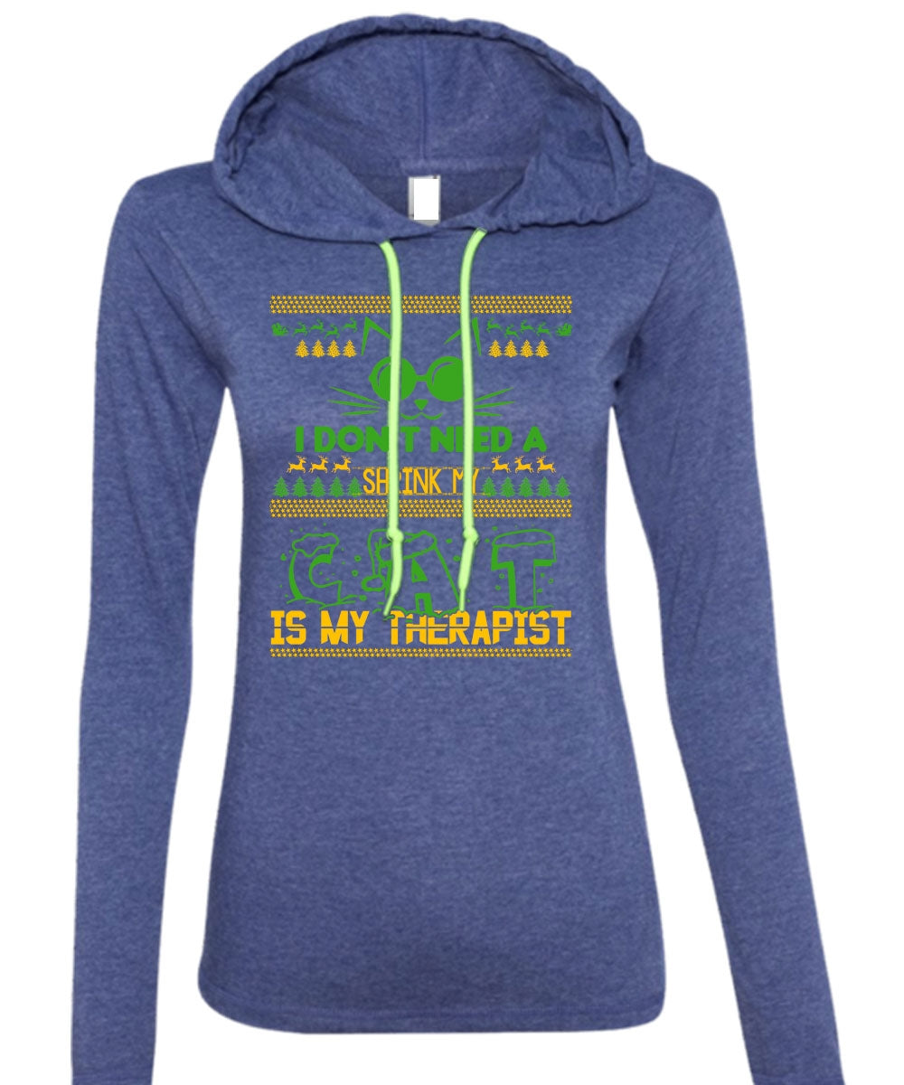 Shrink My Cat Is My Therapist T Shirt, I Love My Cat T Shirt (Anvil Ladies Ringspun Hooded)