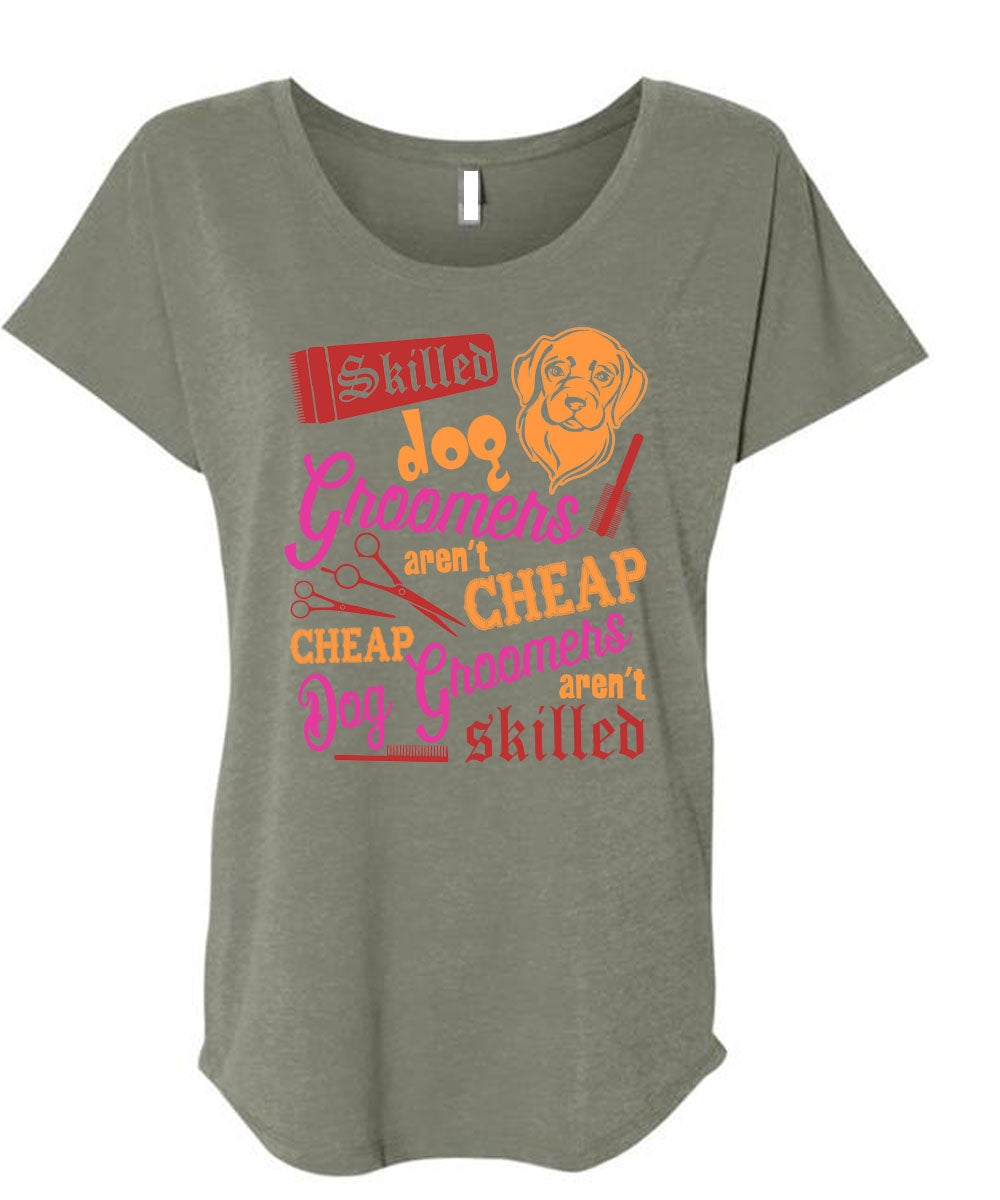Skilled Dog Groomers Aren't Cheap T Shirt, Being A Groomer T Shirt, Cool Shirt (Ladies' Triblend Dolman Sleeve)