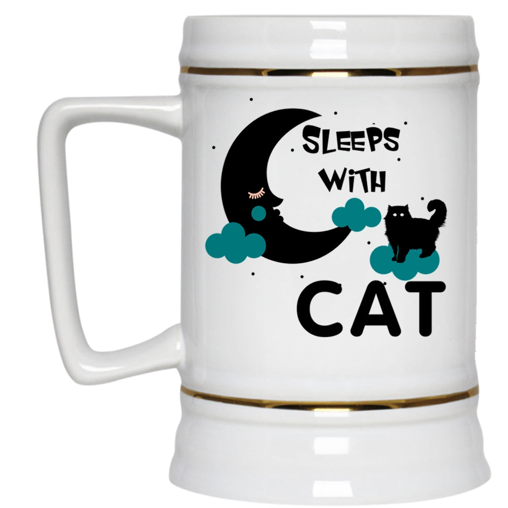 Sleep With Cat Mug, Cool Gift For Cat Lover Cup (Beer Mug)