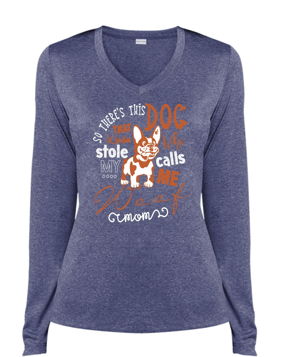 So There's This Dog T Shirt, I Love My Dog T Shirt, Cool Shirt (Ladies LS Heather V-Neck)