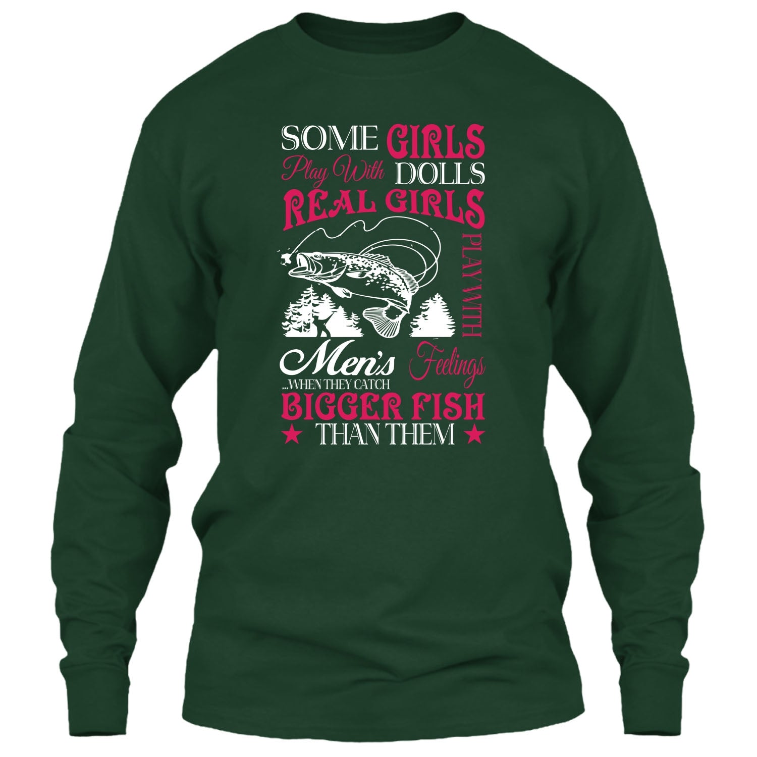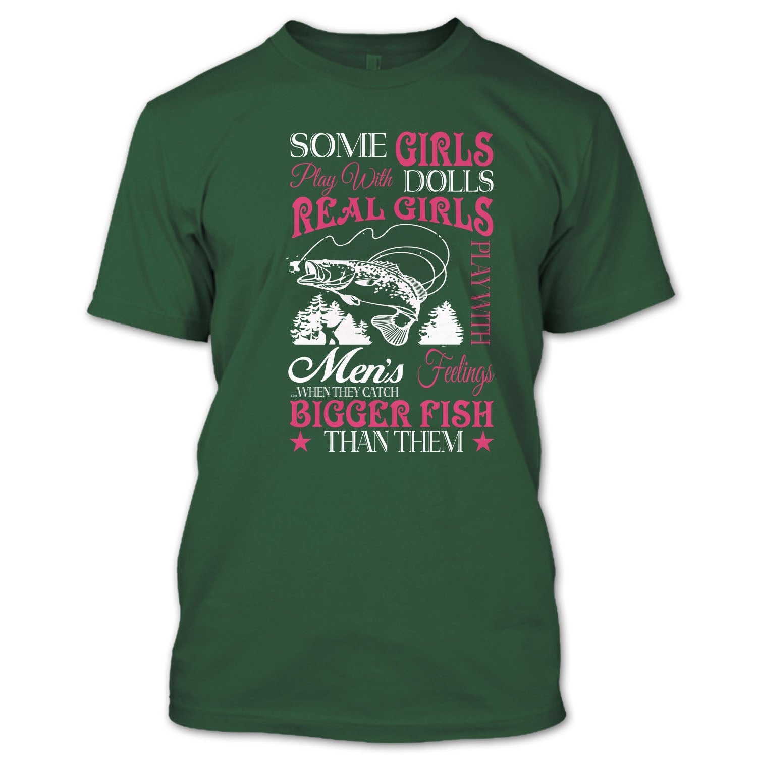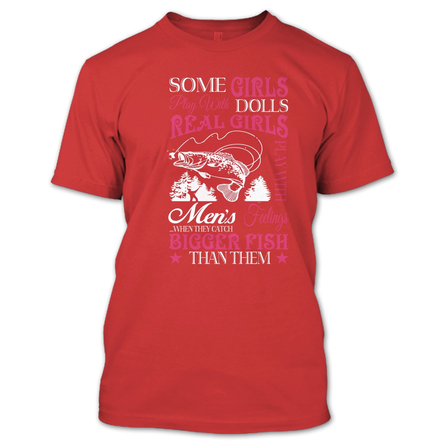 Some Girls Play With Dolls T Shirt, Real Girls Play With Men's Feeling When They Catch Bigger Fish T Shirt
