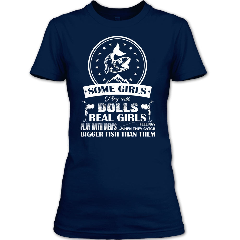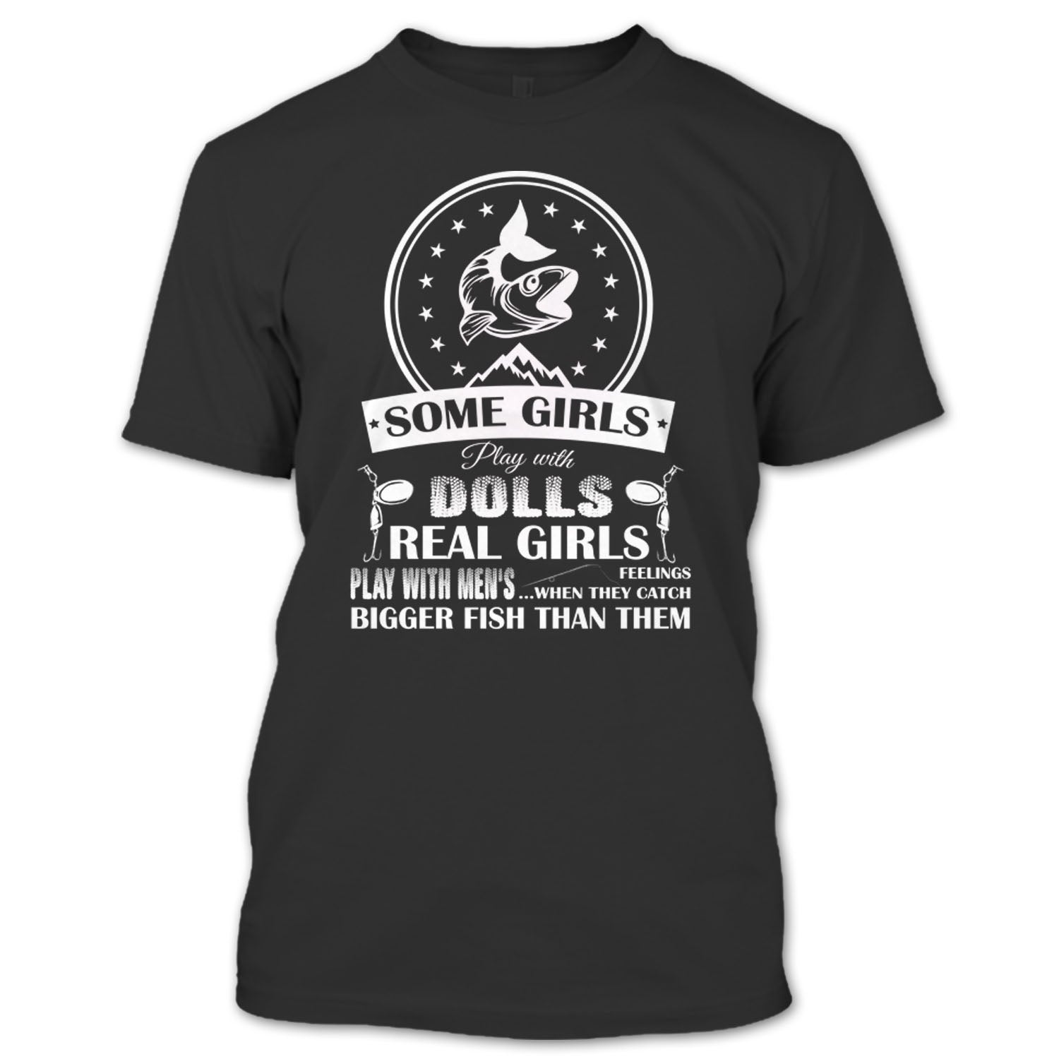 Some Girls Play With Dolls T Shirt, Real Girls Play With Men's When They Catch Bigger Fish Than Them T Shirt