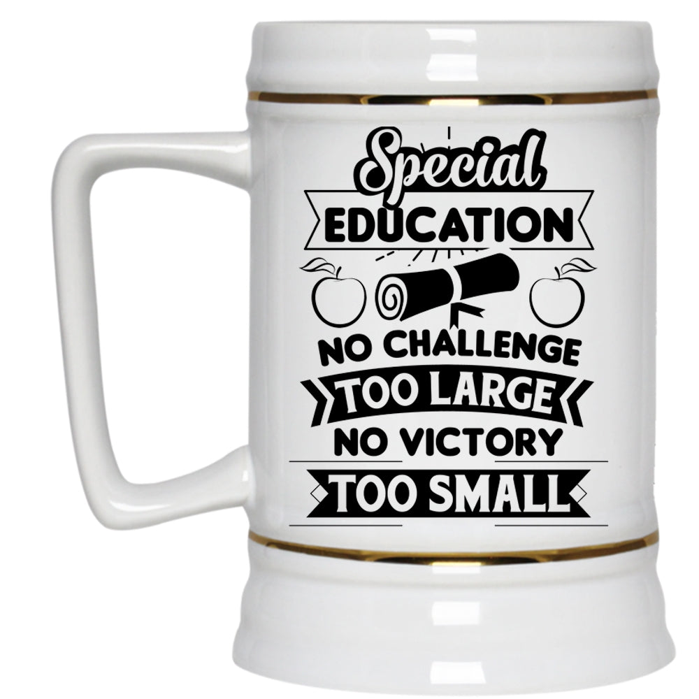 Special Education Mug, No Challenge Too Large Cup (Beer Mug)