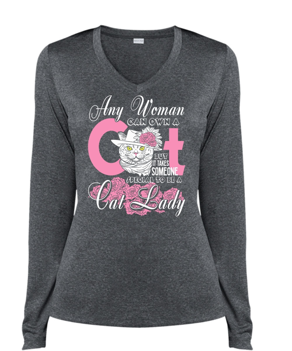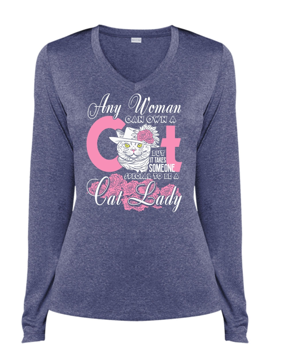 Special To Be A Cat Lady T Shirt, Any Woman Can Own A Cat T Shirt, Cool Shirt (Ladies LS Heather V-Neck)
