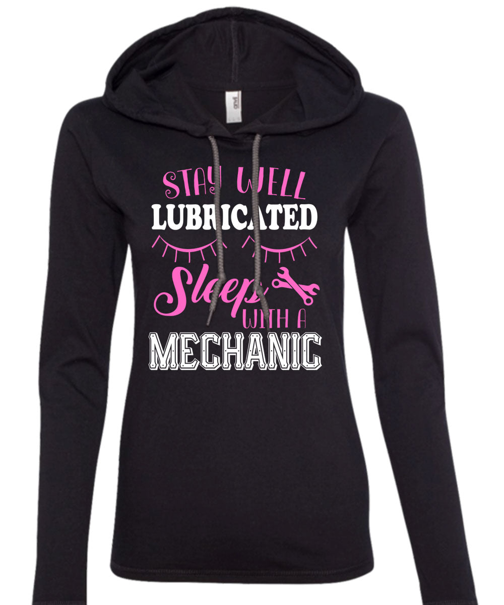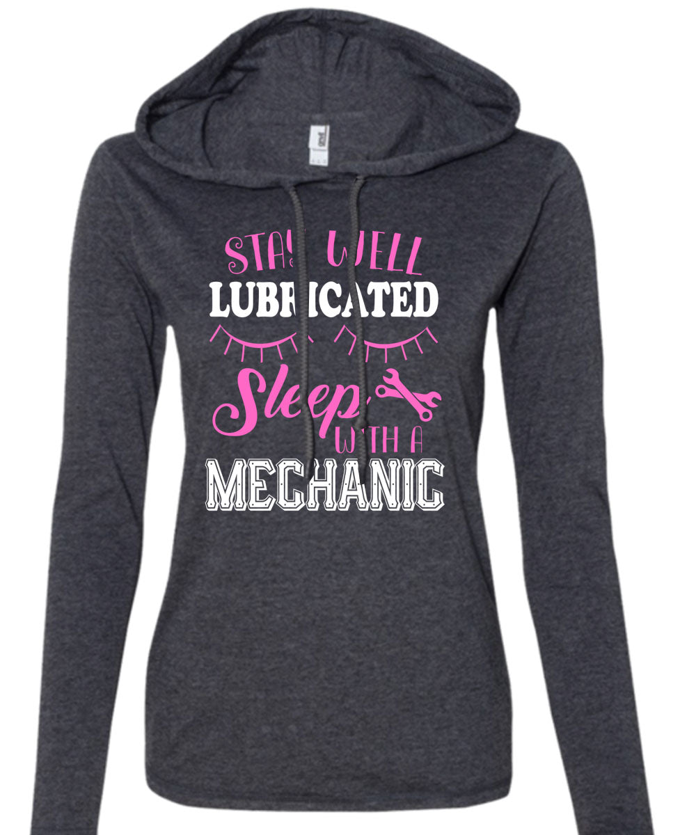Stay Well Lubricated Sleep With A Mechanic T Shirt, Calls Me A Mechanic T Shirt (Anvil Ladies Ringspun Hooded)
