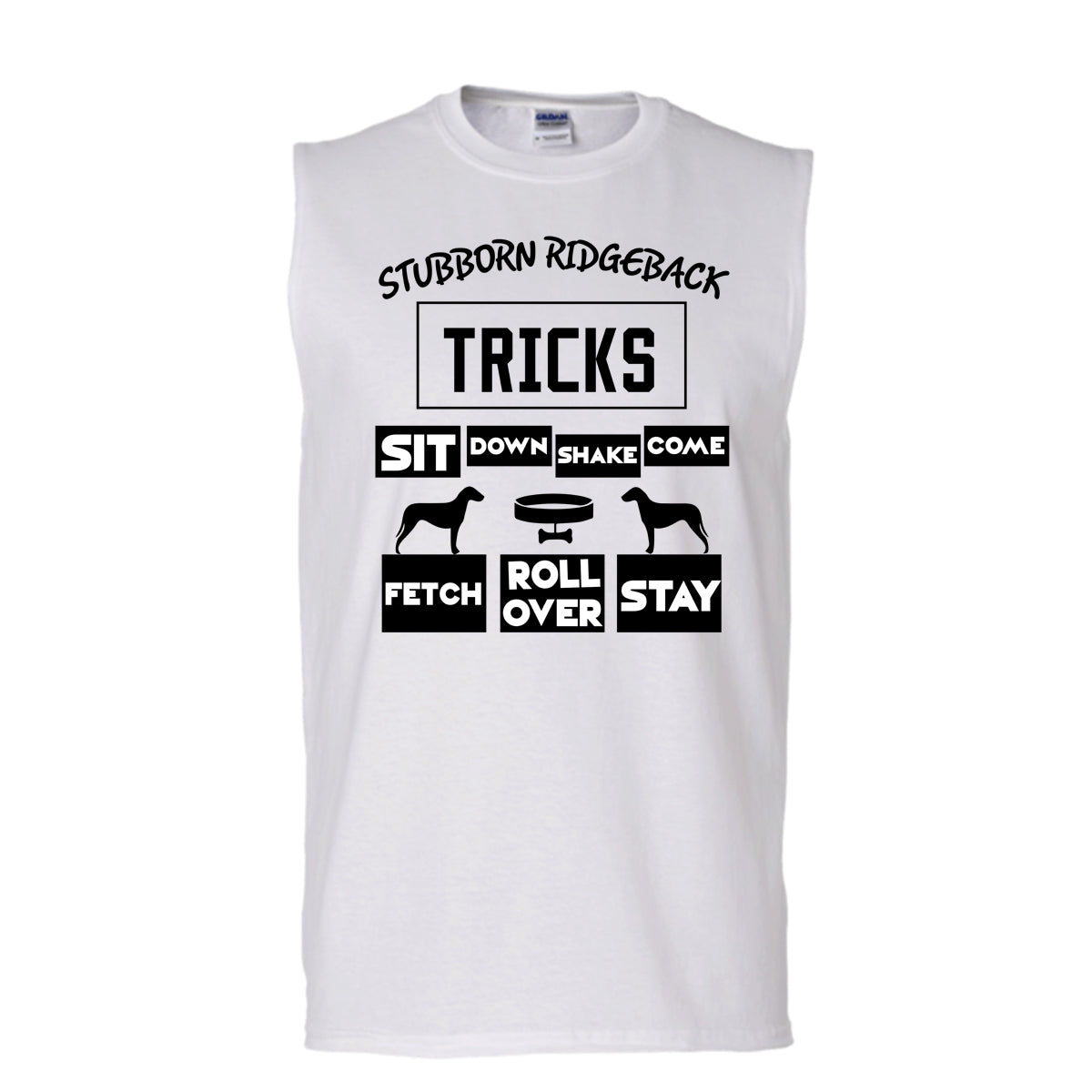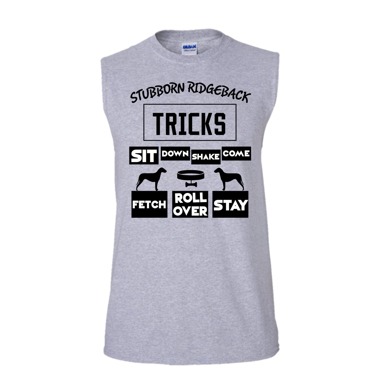Stubborn Ridgeback Tricks T Shirt, Coolest Dog T Shirt, Awesome t-shirts (Men's Cotton Sleeveless)