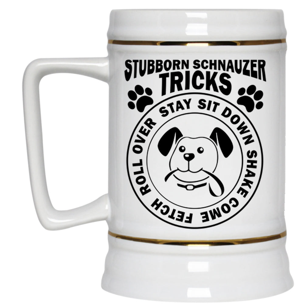 Stubborn Schnauzer Tricks Funny Mug, I Love Dogs Cup (Beer Mug)