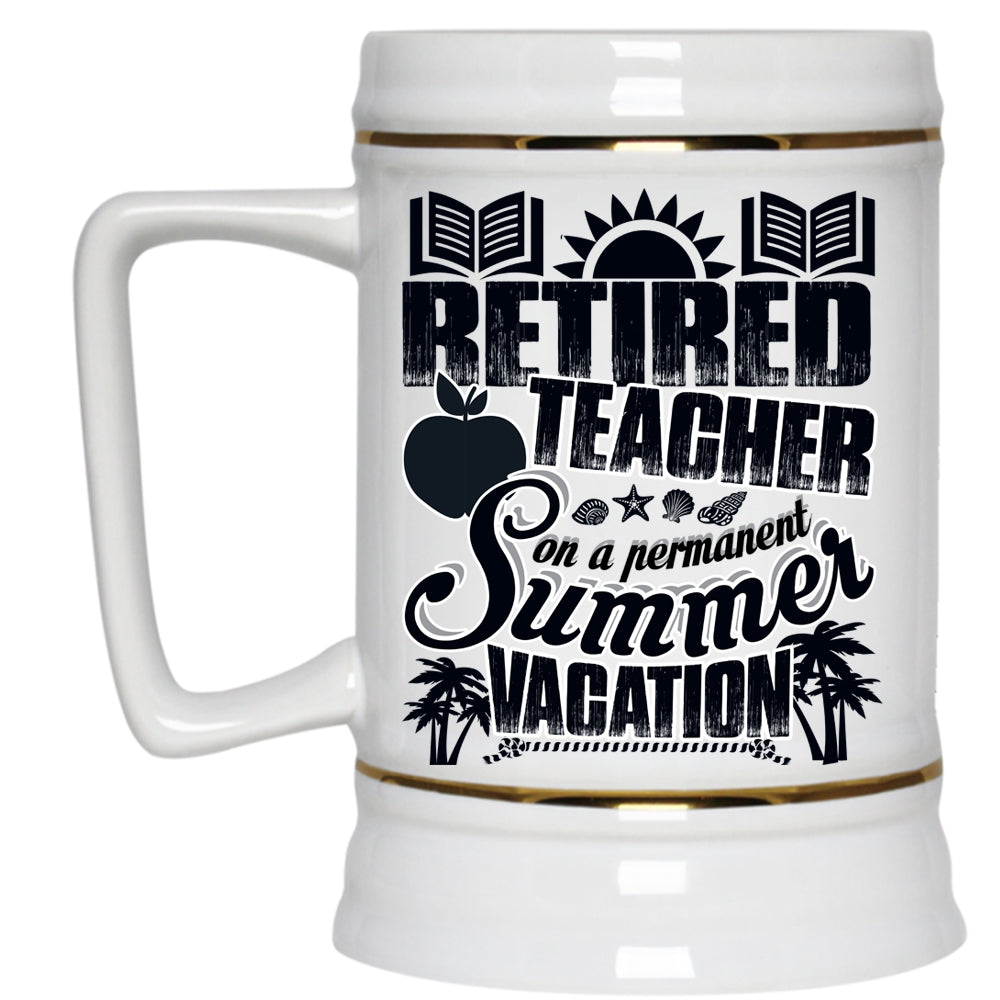 Summer Vacation Beer Stein 22oz, Retired Teacher Beer Mug