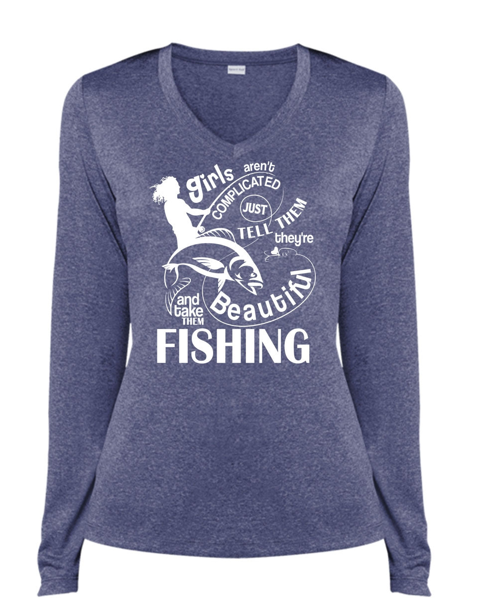Take Them Beautiful Fishing T Shirt, Girls Aren't Complicated T Shirt, Cool Shirt (Ladies LS Heather V-Neck)