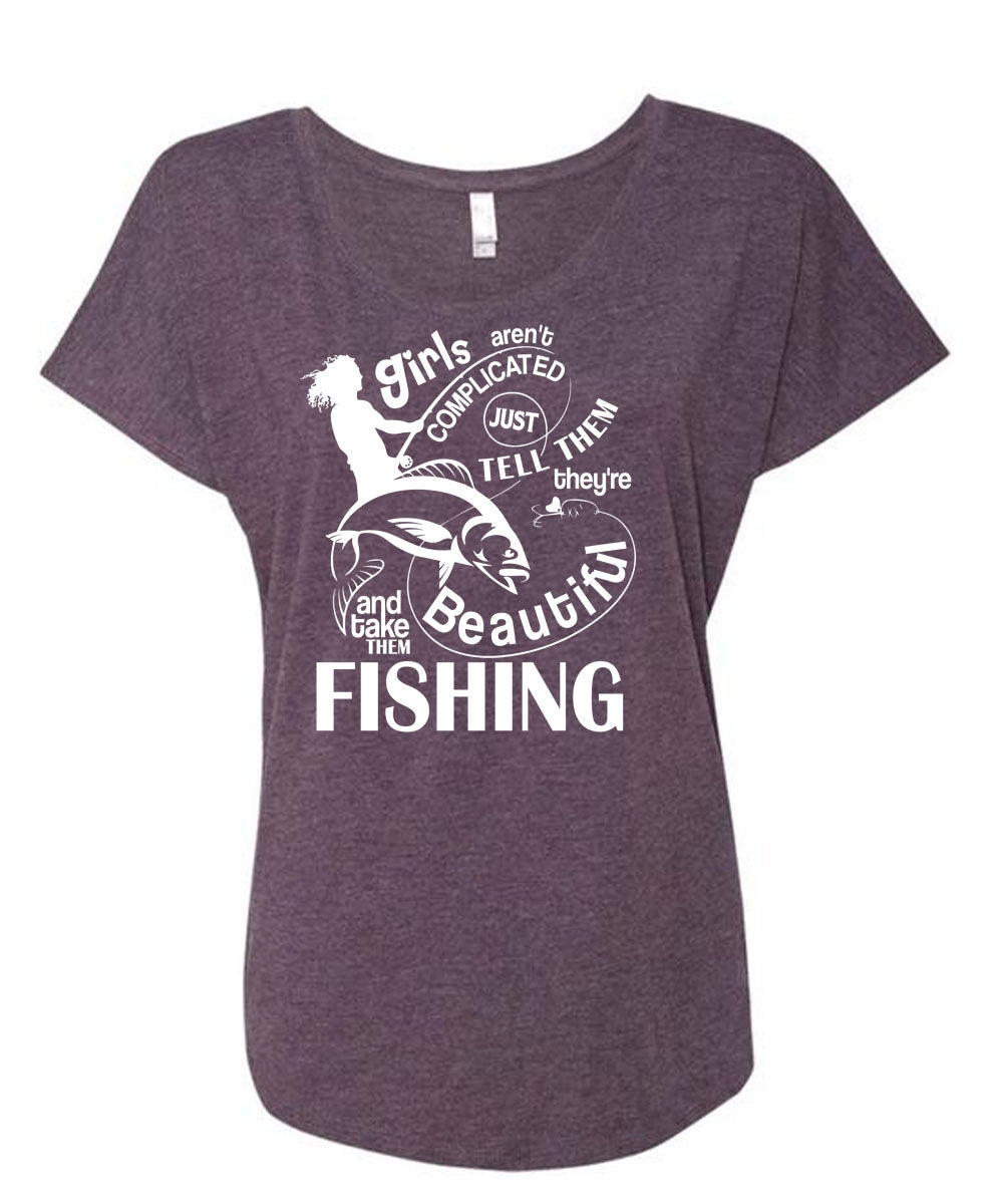 Take Them Beautiful Fishing T Shirt, Girls Aren't Complicated T Shirt, Cool Shirt (Ladies' Triblend Dolman Sleeve)
