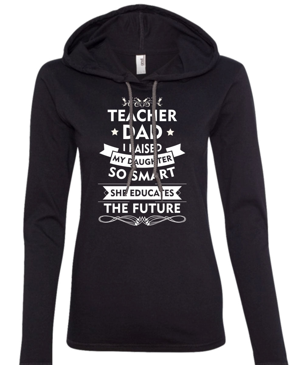 Teacher Dad I Raised My Daughter So Smart T Shirt, She Educates The Future T Shirt (Anvil Ladies Ringspun Hooded)
