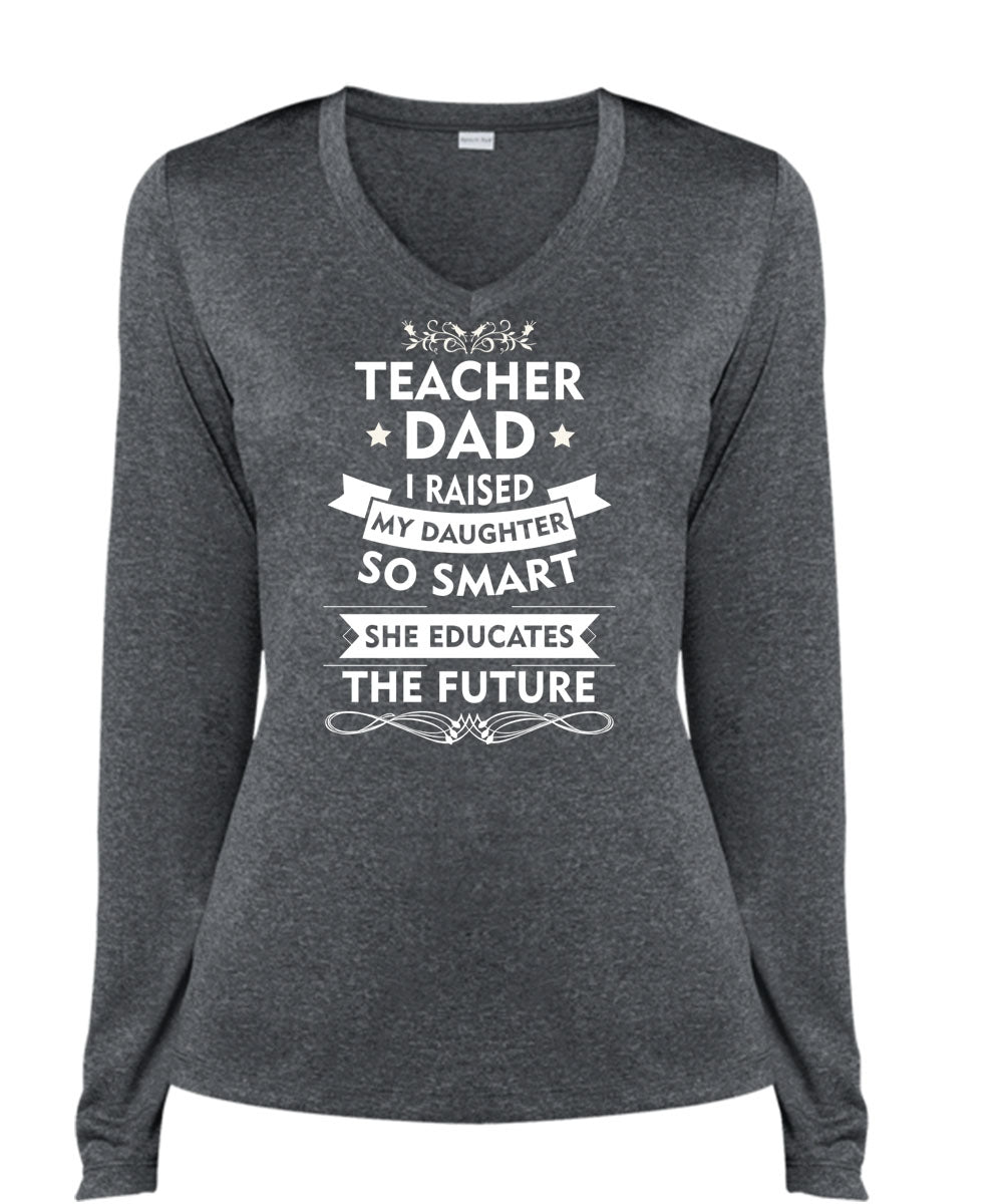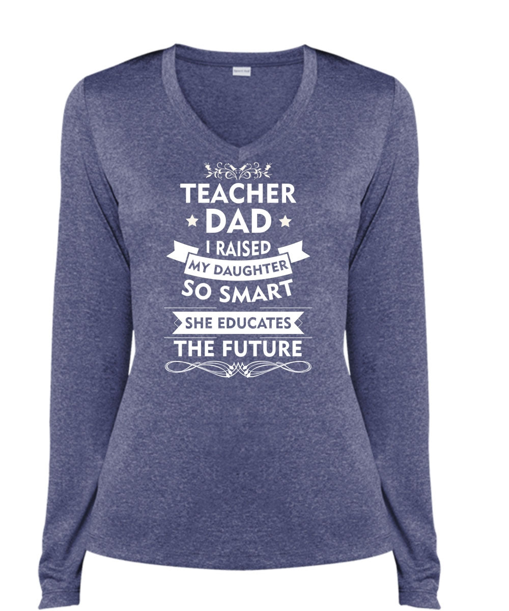 Teacher Dad I Raised My Daughter So Smart T Shirt, She Educates The Future T Shirt (Ladies LS Heather V-Neck)