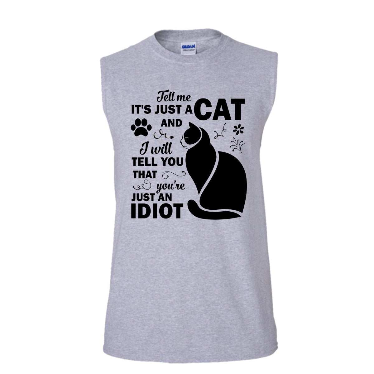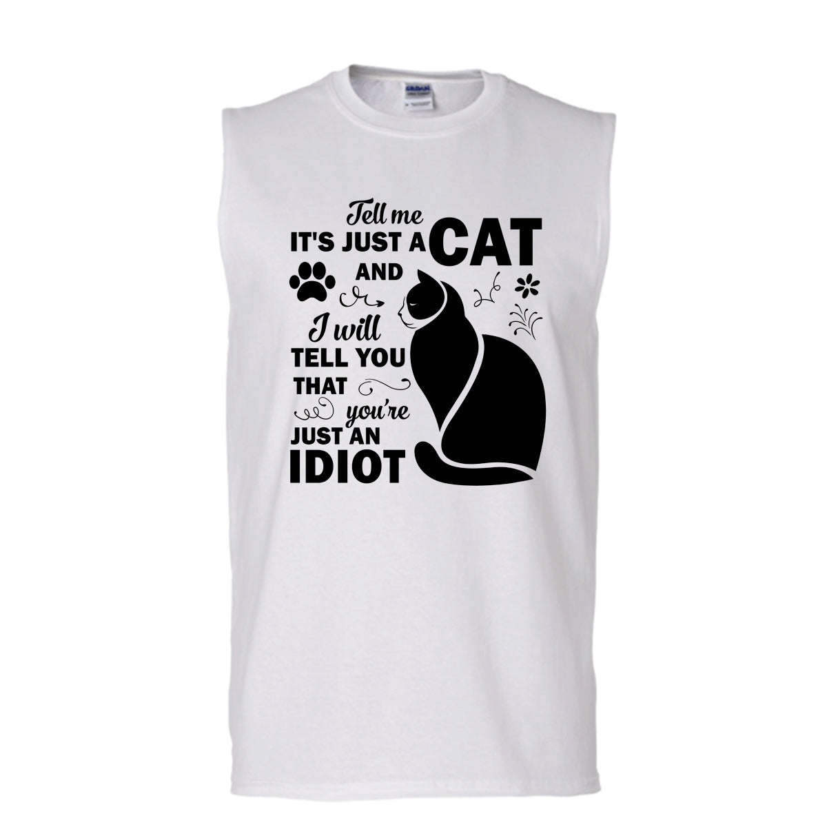 Tell Me It's Just A Cat Shirt, You're Just An Idiot Shirt, Cat Lover T Shirt (Men's Cotton Sleeveless)