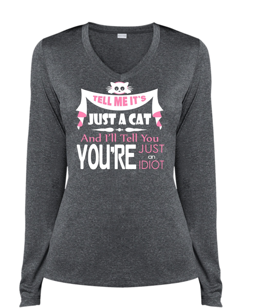 Tell Me It's Just A Cat T Shirt, You're Just An Idiot T Shirt (Ladies LS Heather V-Neck)