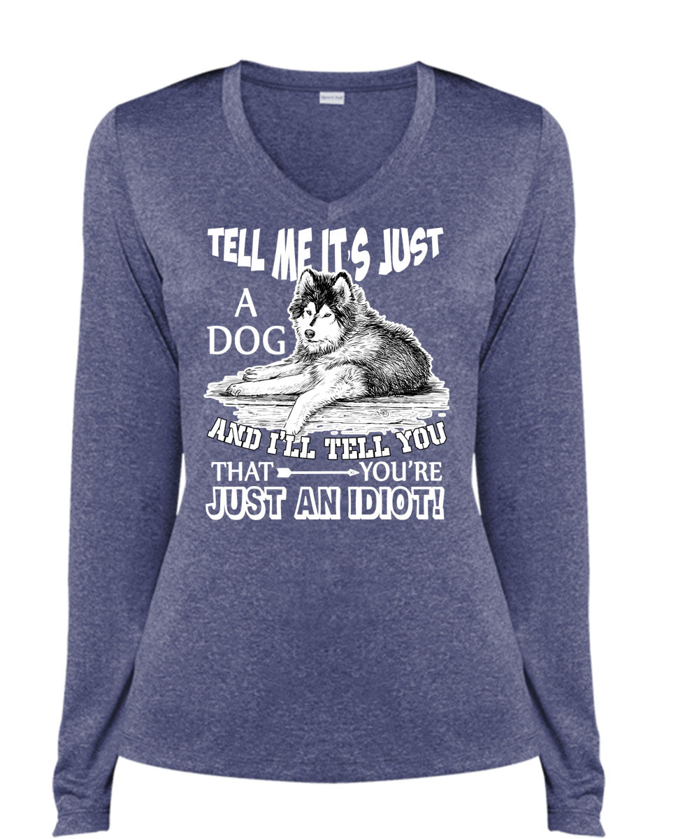Tell Me It's Just A Dog T Shirt, You're Just An Idiot T Shirt, Cool Shirt (Ladies LS Heather V-Neck)