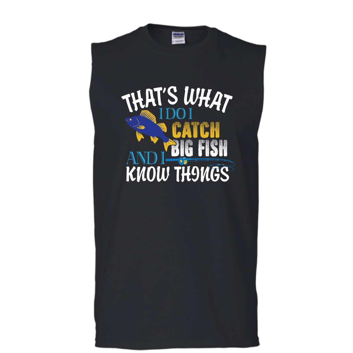 That What I Do I Catch Big Fish And I Know Things Shirt (Men's Cotton Sleeveless)