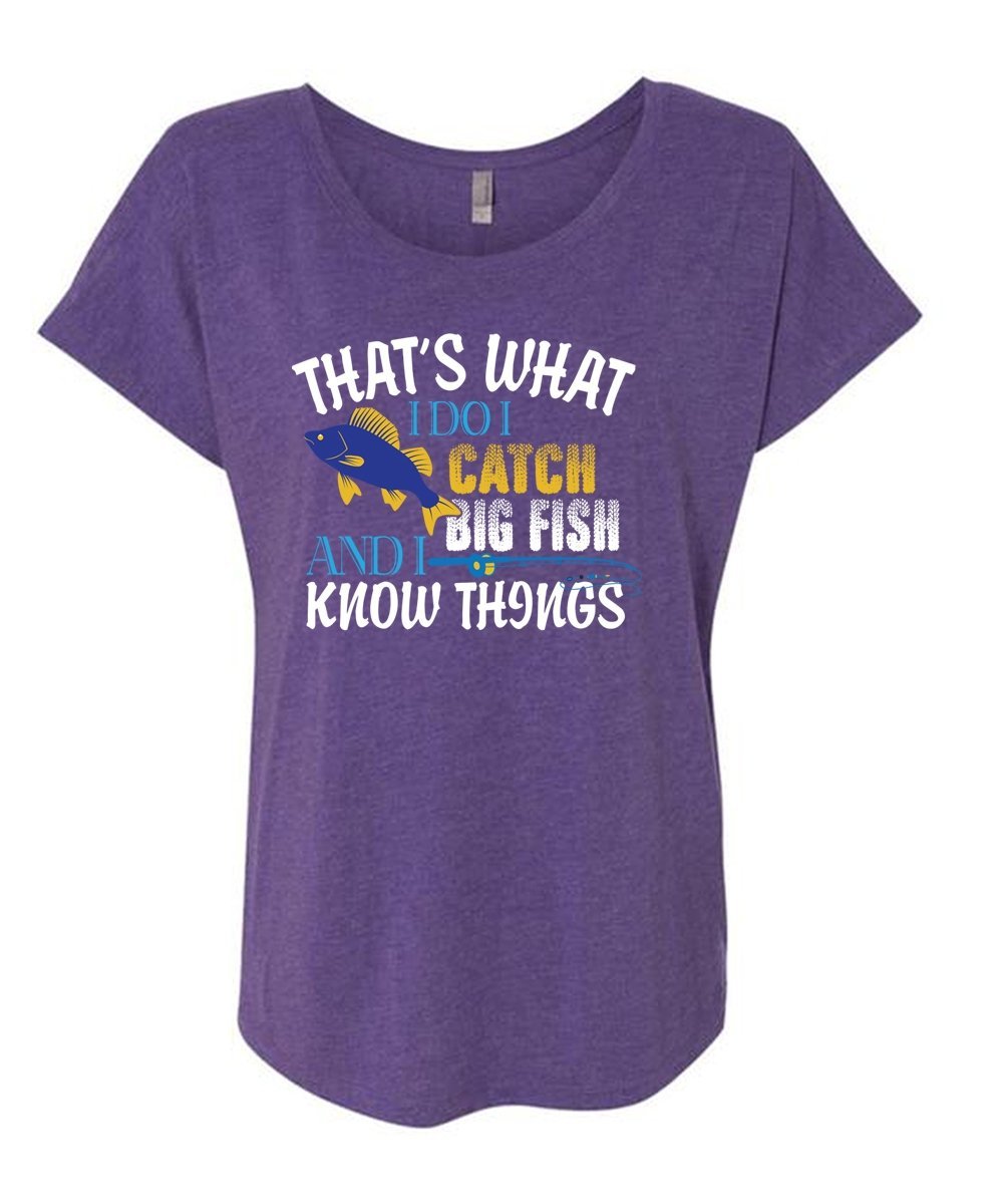 That's What I Do I Catch Big Fish And I Know Things T Shirt, To Go Fishing T Shirt (Ladies' Triblend Dolman Sleeve)