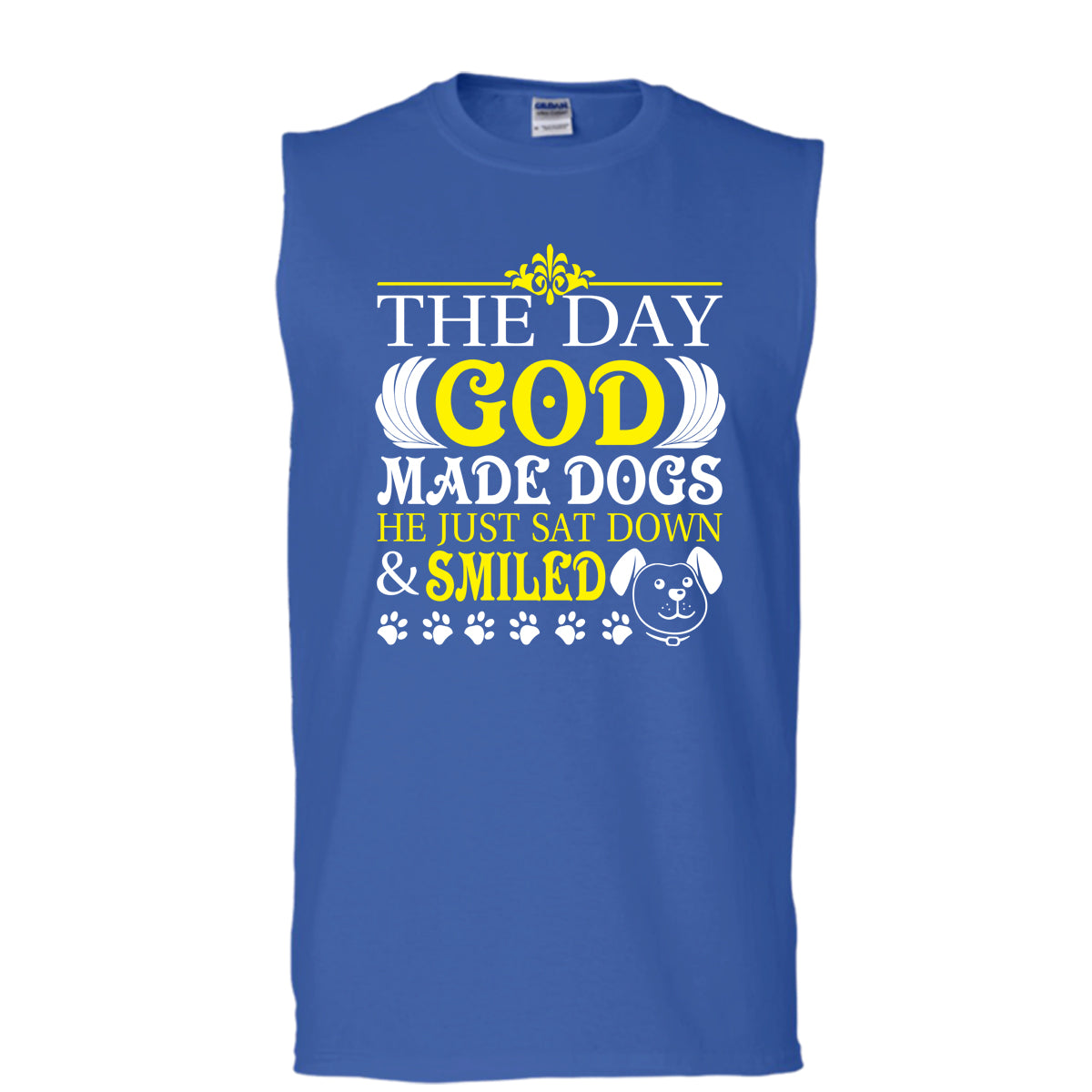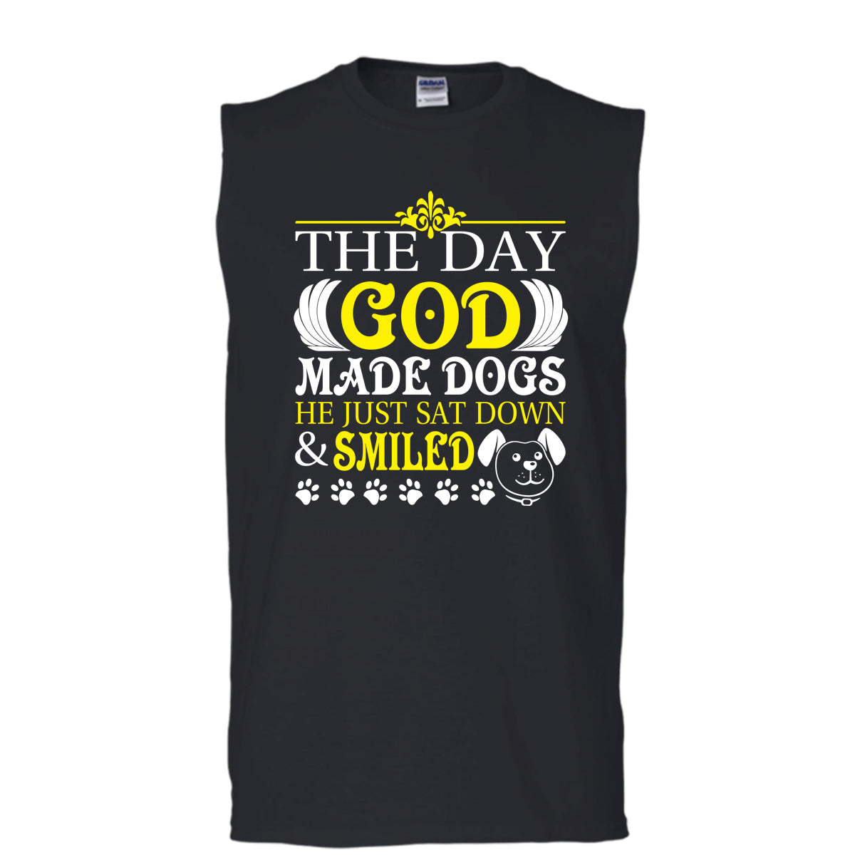 The Day God Made Dog T Shirt, He Just Sat Down & Smiled T Shirt, Cool T Shirt (Men's Cotton Sleeveless)