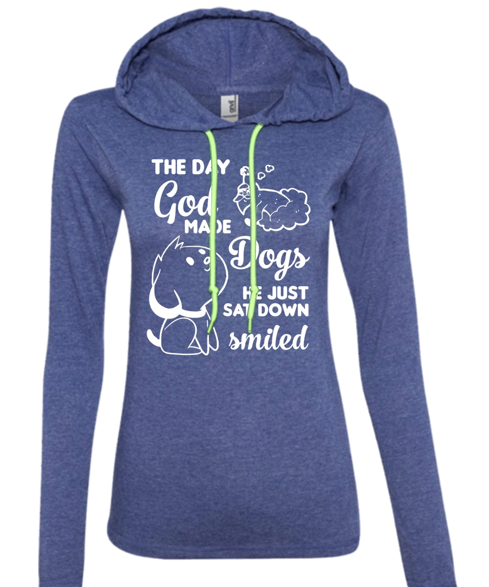 The Day God Made Dogs He Just Sat Down Smiled T Shirt, Pets T Shirt, I Love Dog T Shirt (Anvil Ladies Ringspun Hooded)