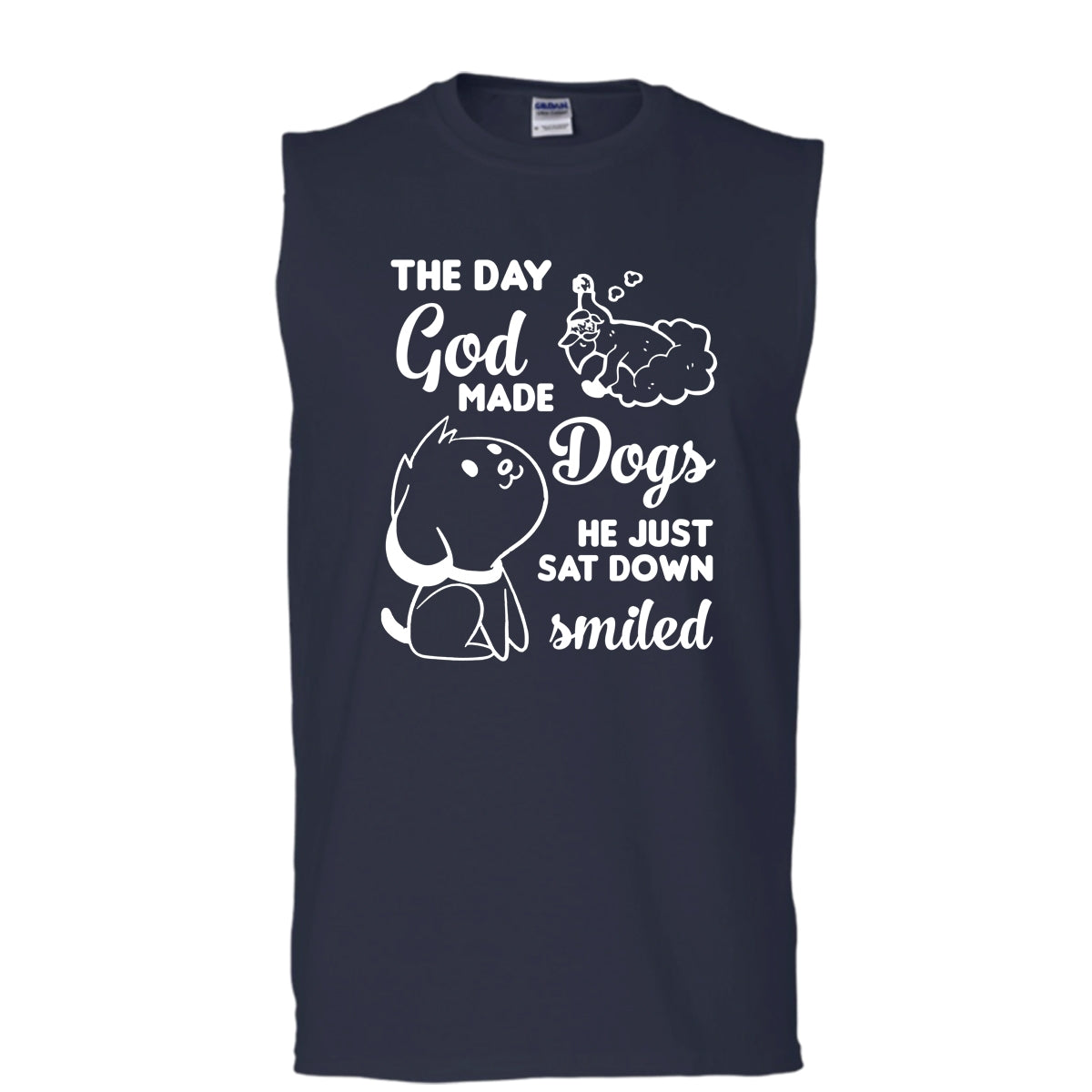 The Day God Made Dogs Shirt, He Just Sat Down Smiled Shirt (Men's Cotton Sleeveless)