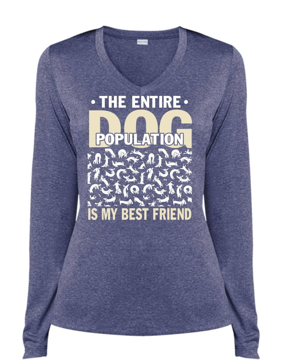 The Entire Dog Population Is My Best Friend T Shirt, My Favorite T Shirt, Cool Shirt (Ladies LS Heather V-Neck)