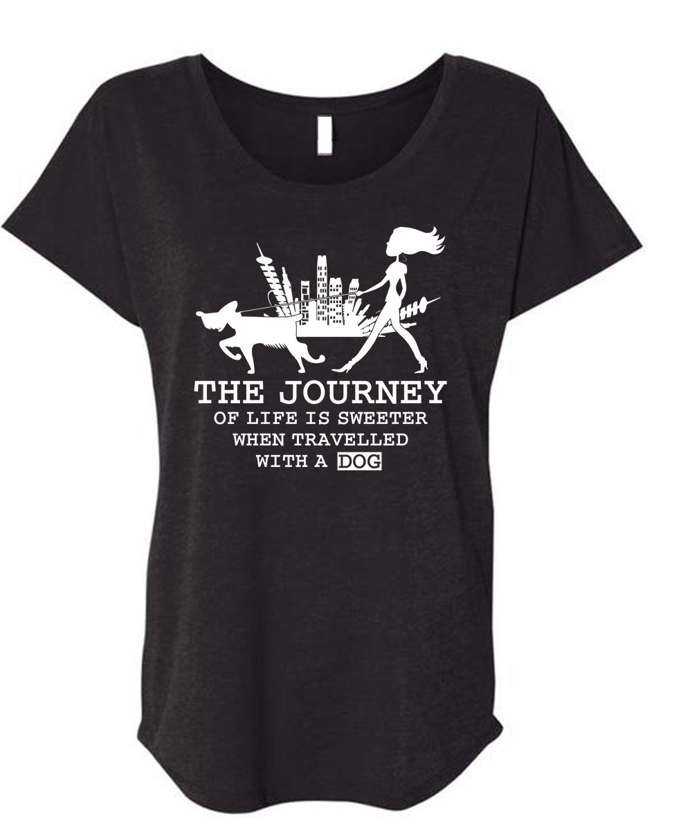 The Journey Of Life Is Sweeter T Shirt, Travelled With A Dog T Shirt, Cool Shirt (Ladies' Triblend Dolman Sleeve)