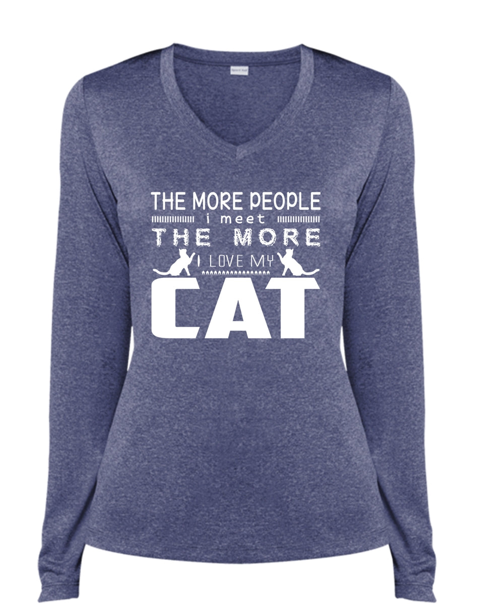 The More People I Meet The More I Love My Cat T Shirt, My Pets T Shirt, My Favorite T Shirt (Ladies LS Heather V-Neck)