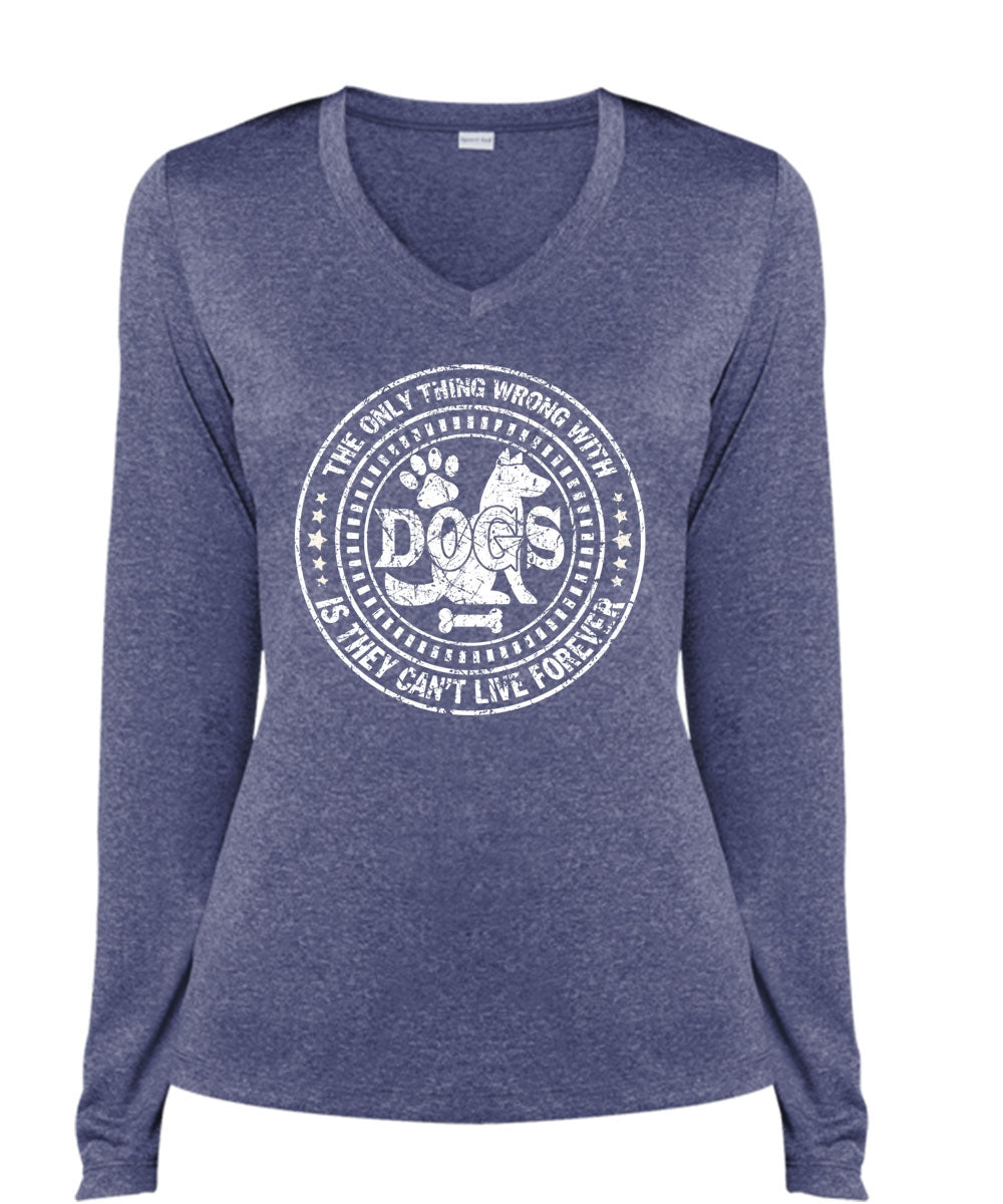 The Only Thing Wrong With Dogs T Shirt, I Love My Dog T Shirt, Cool Shirt (Ladies LS Heather V-Neck)