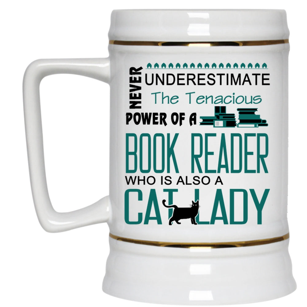 The Tenacious Power Of A Book Reader Cup, Cat Lady Mug (Beer Mug)